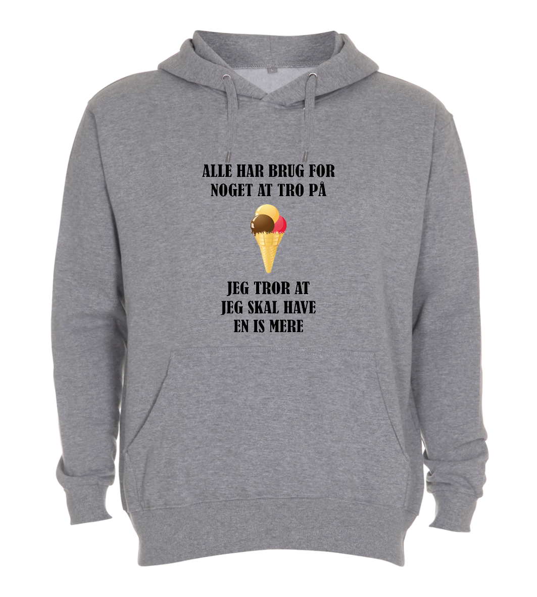 Denne Hoodie med teksten Alle har brug for noget at tro på, jeg tror at jeg skal have en is mere, er det perfekte køb til is elskeren