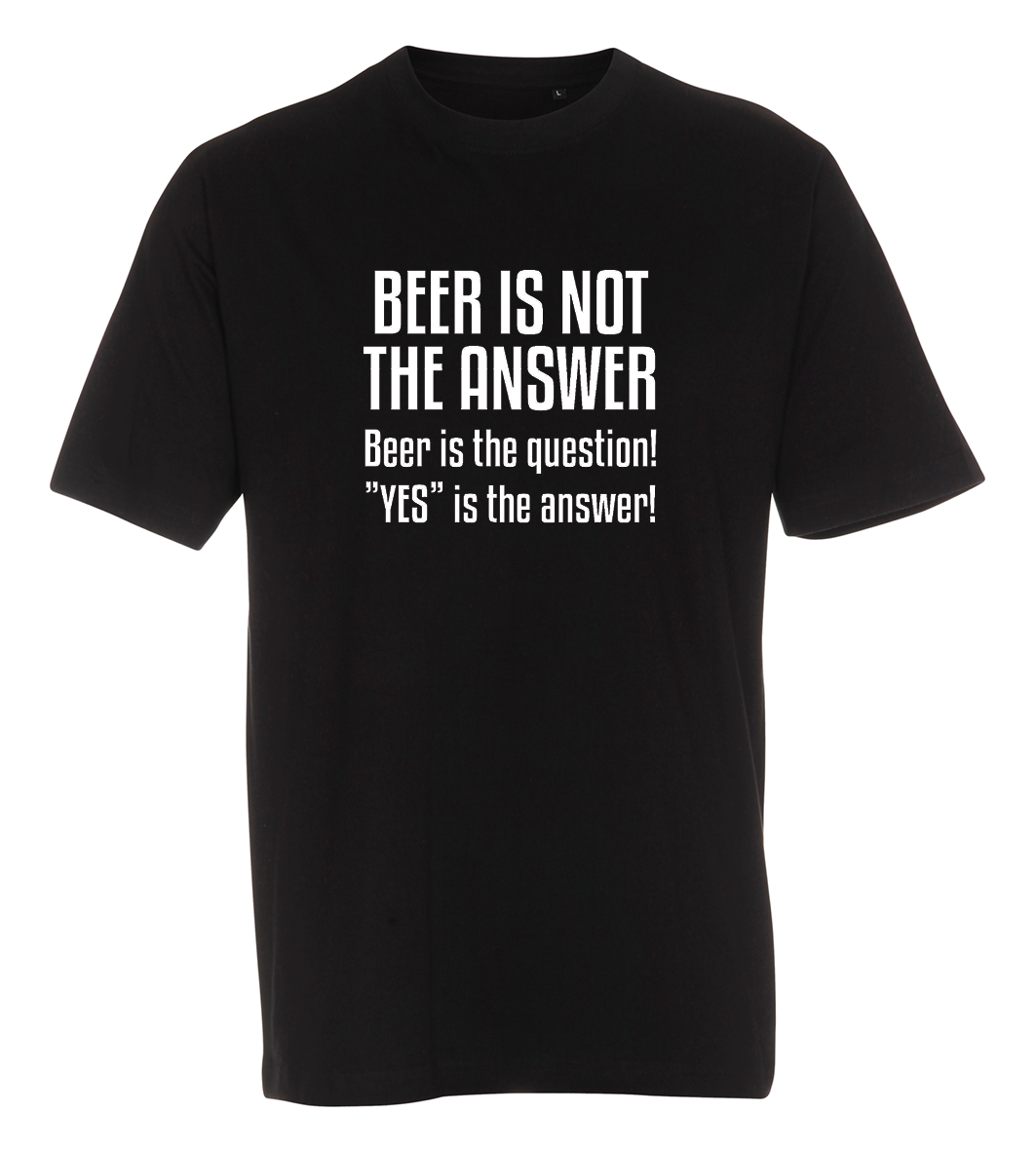 Denne T-shirt med teksten Beer is not the answer, beer is the question, yes is the answer, er det perfekte køb til damen eller manden der er øldrikker.