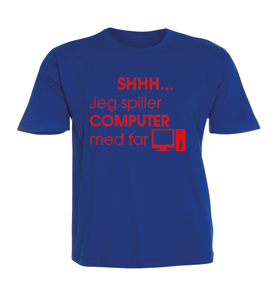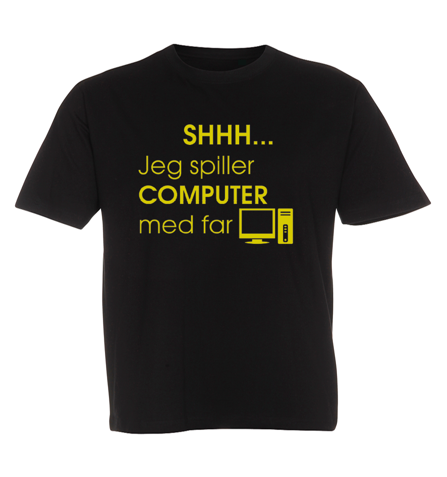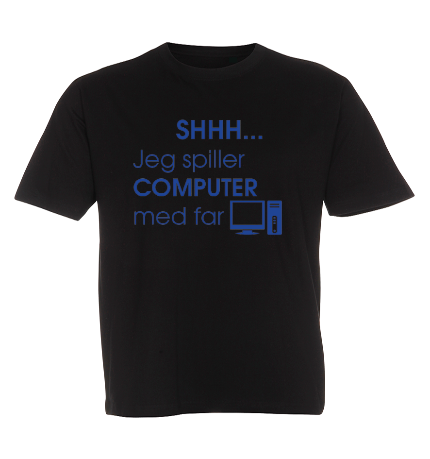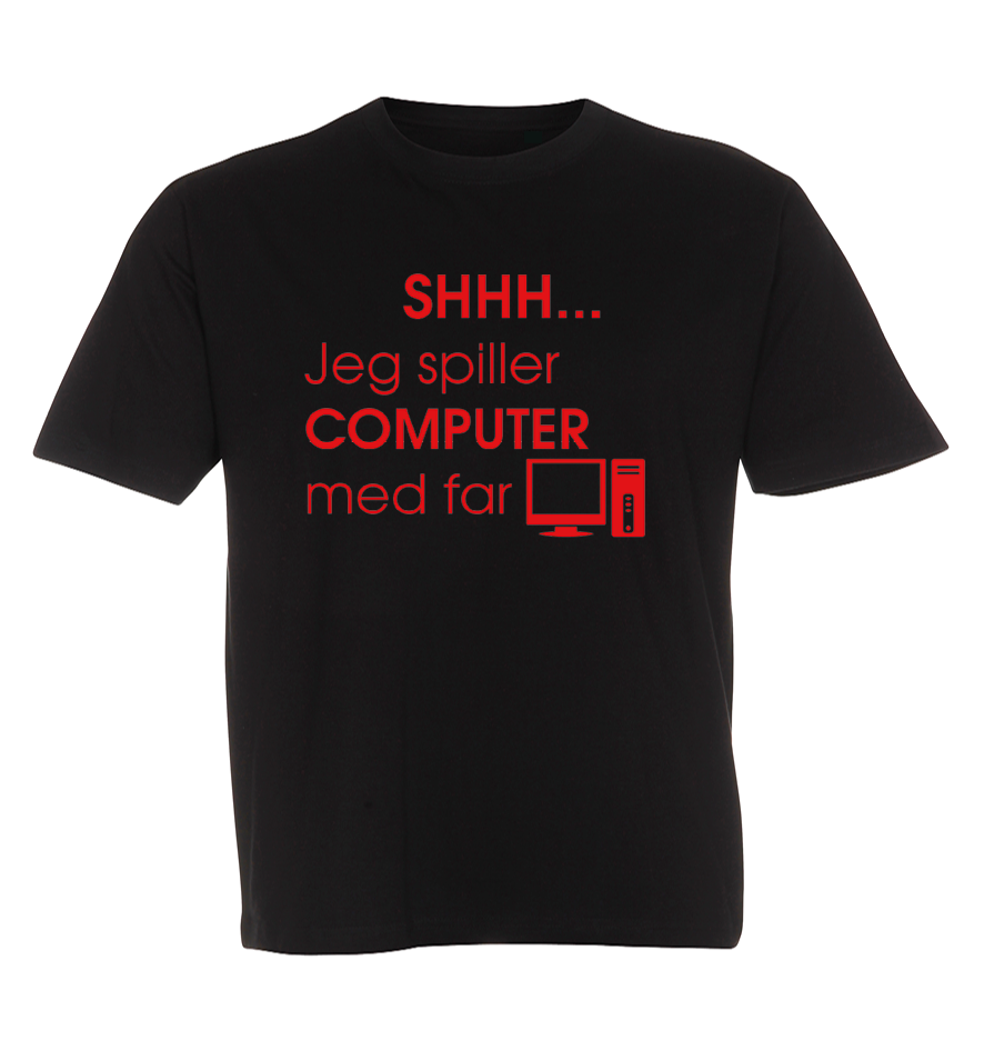 Denne børne t-shirt med teksten Shhh jeg spiller computer med far, er det perfekte køb til barnet der gamer og er glad for at spille computer med far.