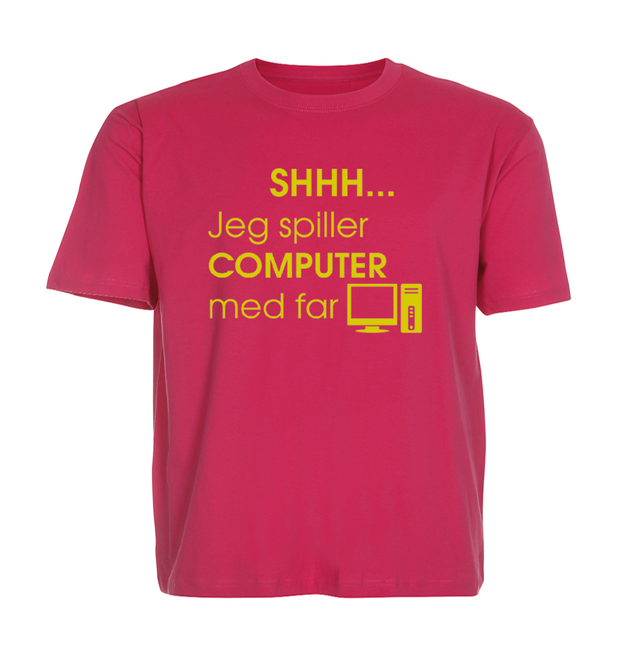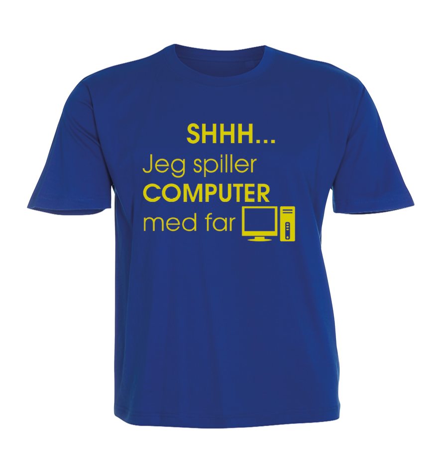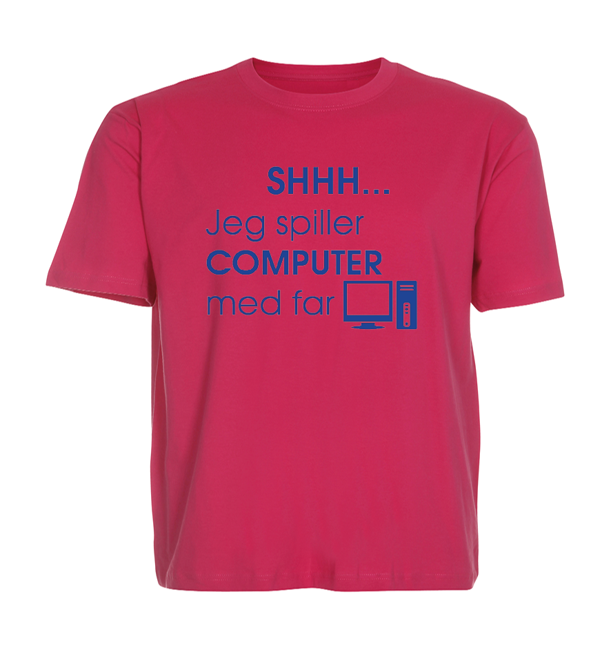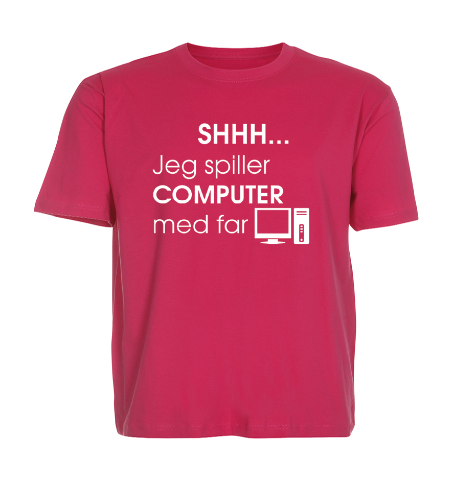 Denne børne t-shirt med teksten Shhh jeg spiller computer med far, er det perfekte køb til barnet der gamer og er glad for at spille computer med far.