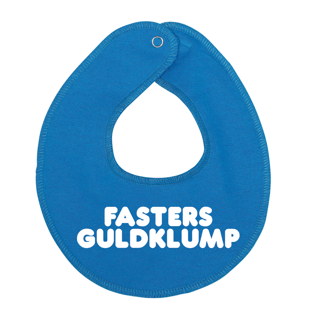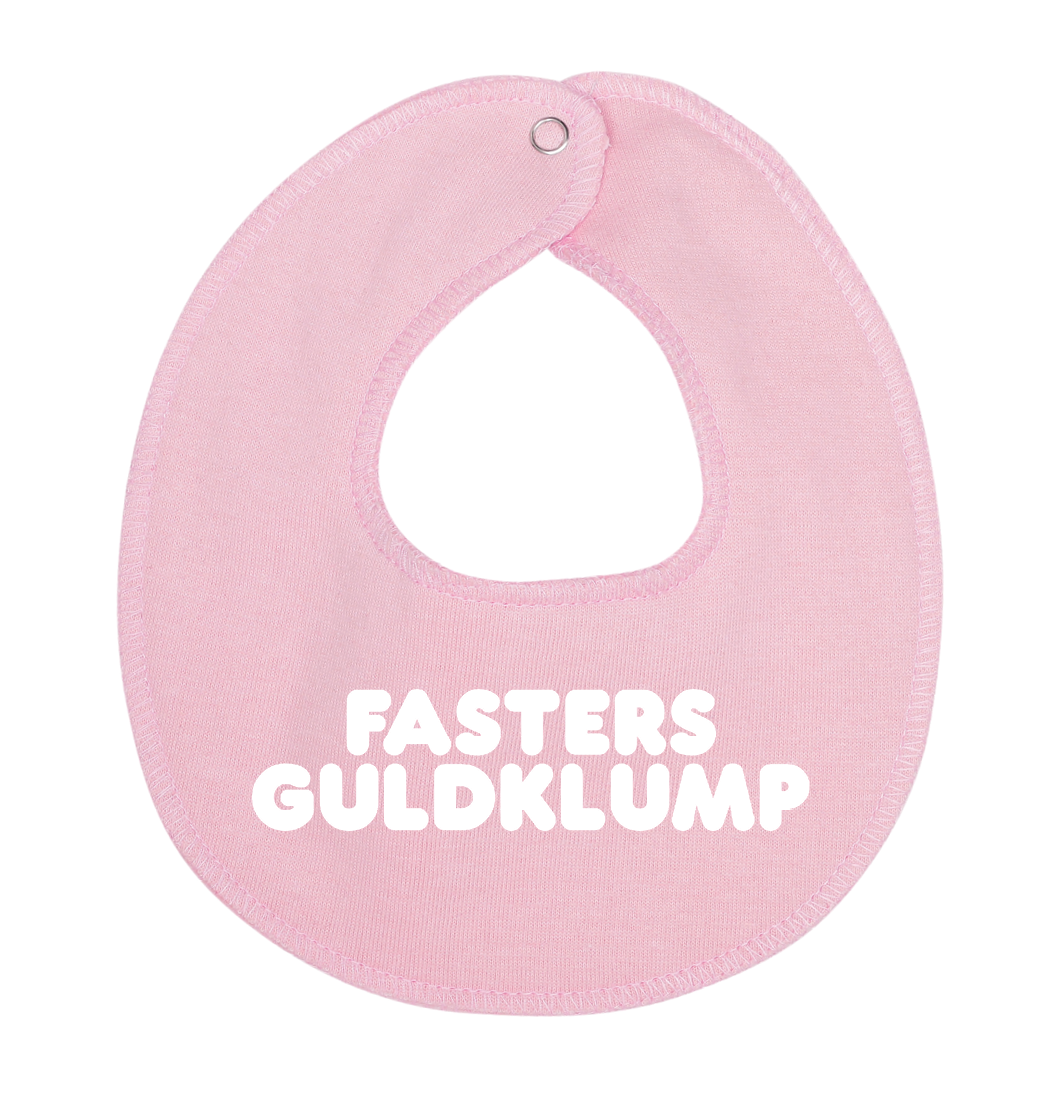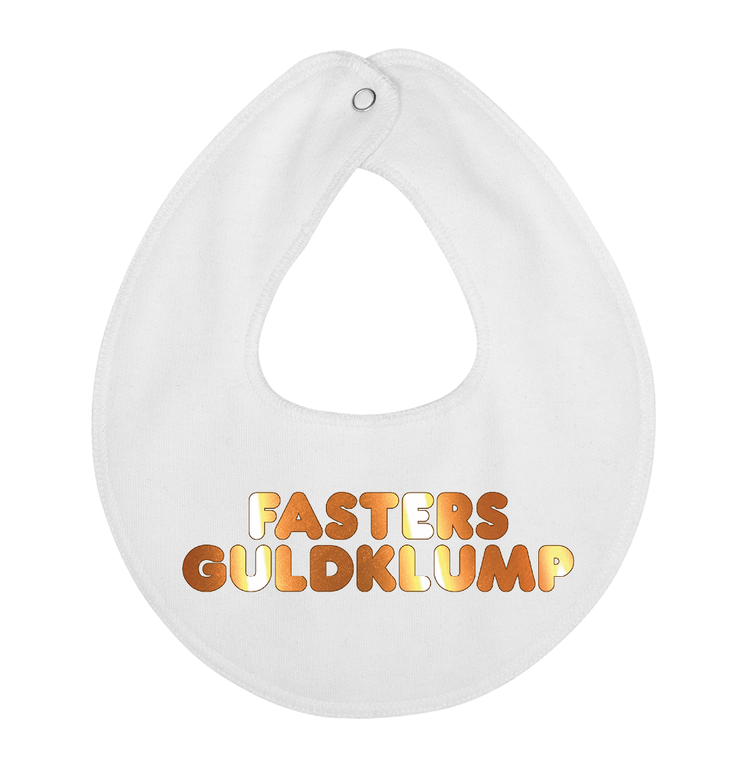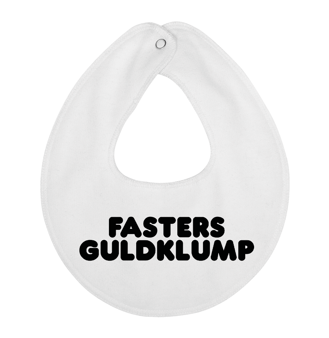 Denne hagesmæk / savlesmæk med teksten fasters guldklump, er det perfekte køb til de kommende forældre, som venter sig en lille baby , som vil blive familiens guldklump, eller gave fra den stolte faster.