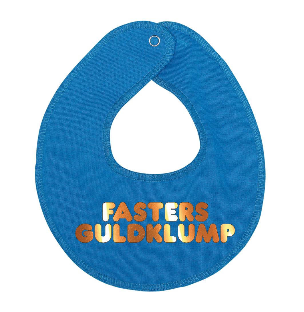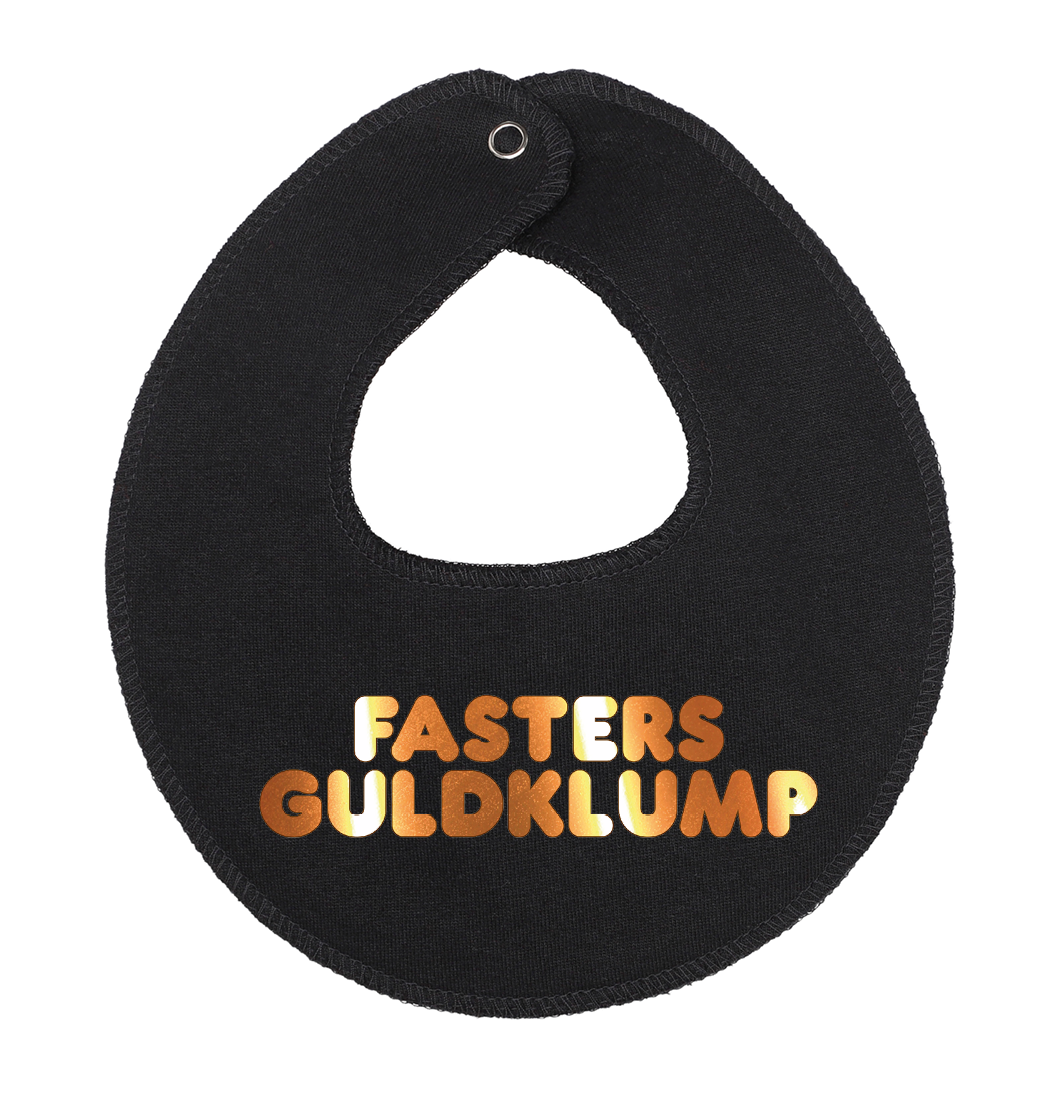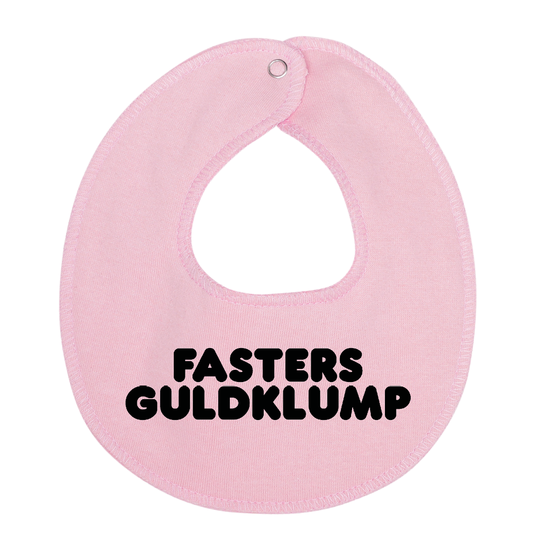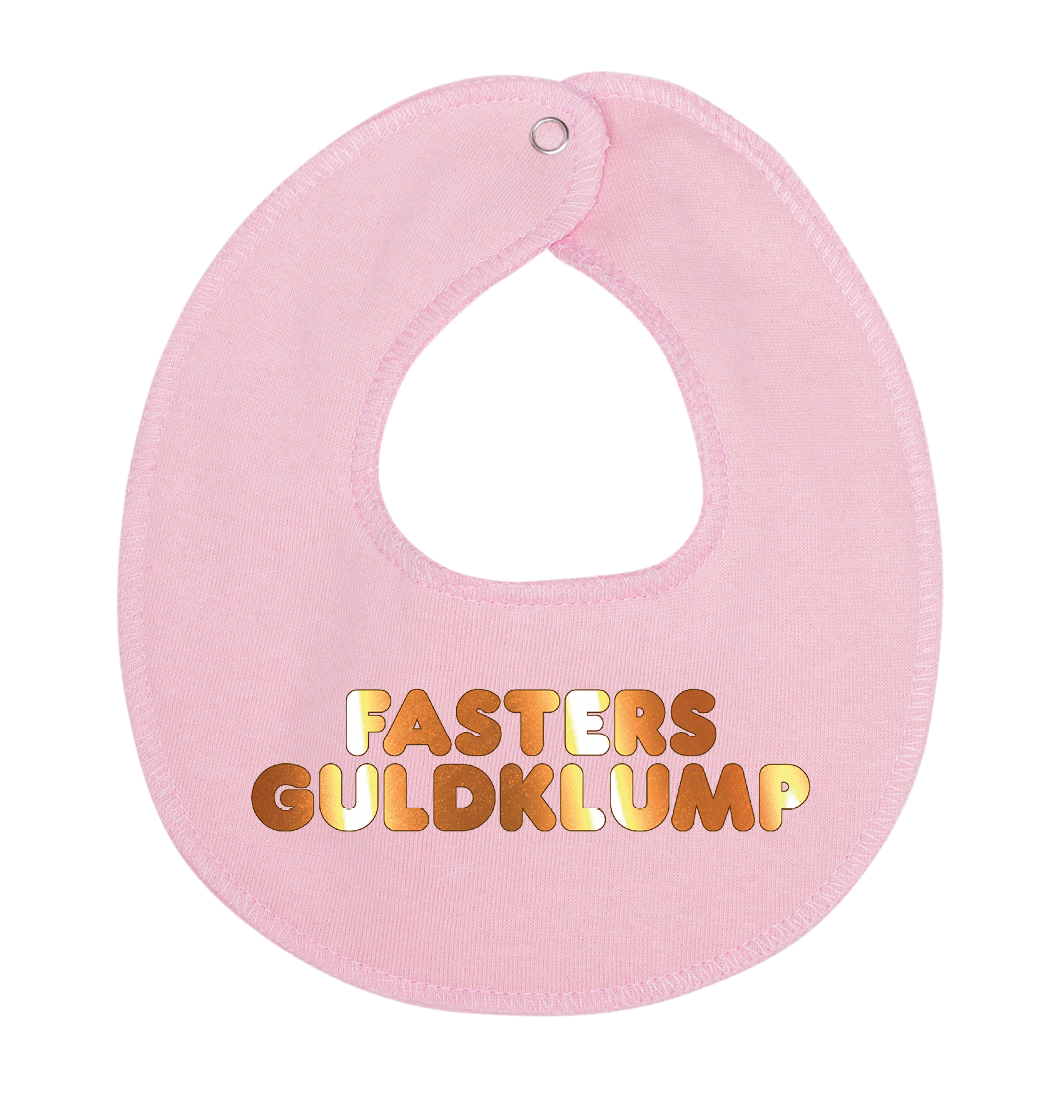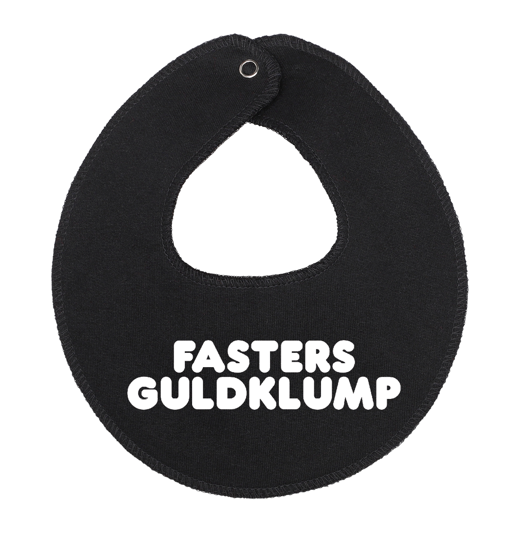 Denne hagesmæk / savlesmæk med teksten fasters guldklump, er det perfekte køb til de kommende forældre, som venter sig en lille baby , som vil blive familiens guldklump, eller gave fra den stolte faster.