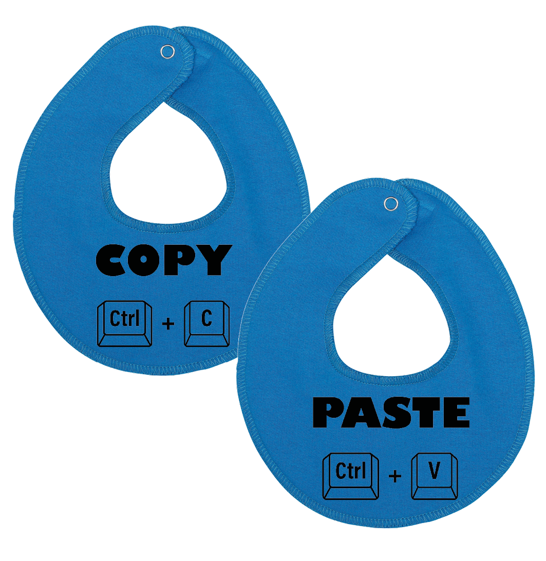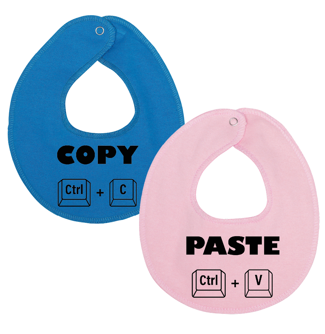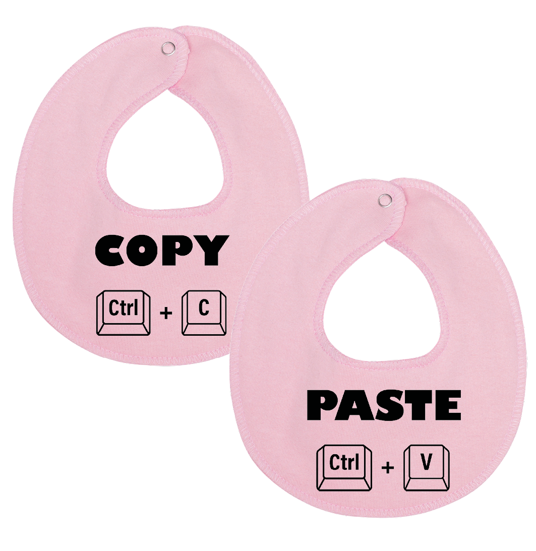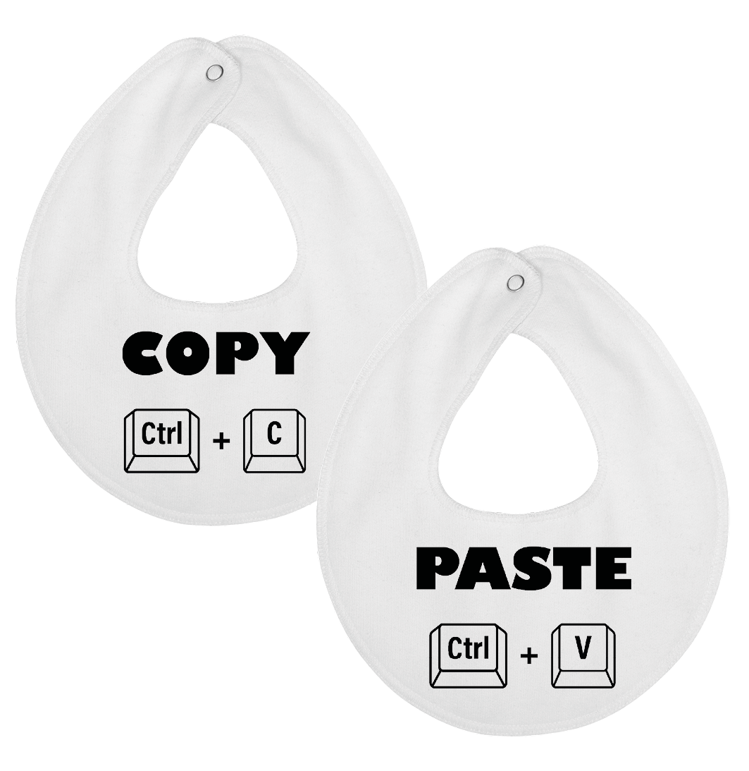 Denne hagesmæk / savlesmæk med tekst og illustrationer af copy / paste er det perfekte køb til de kommende forældre, som venter sig tvillinger.