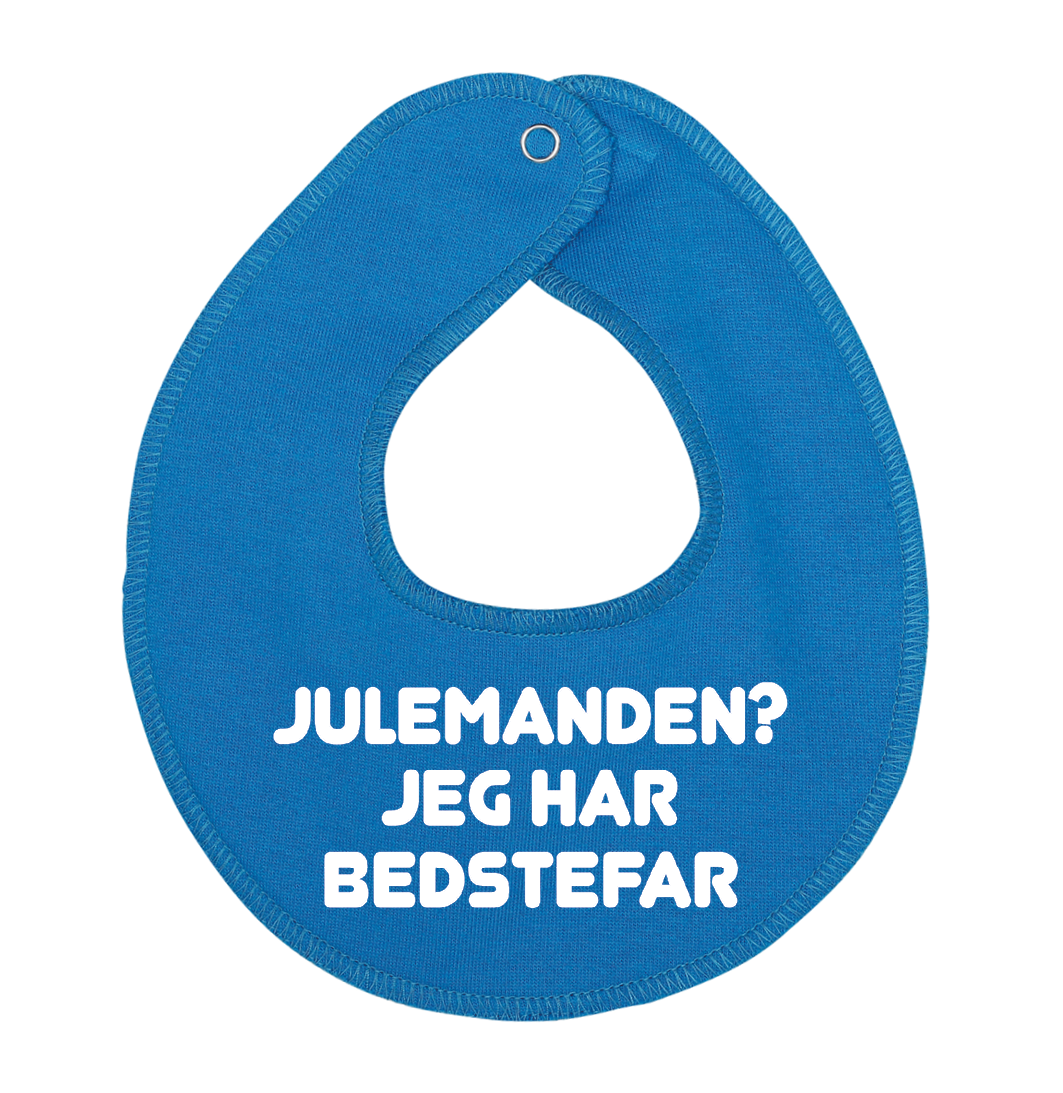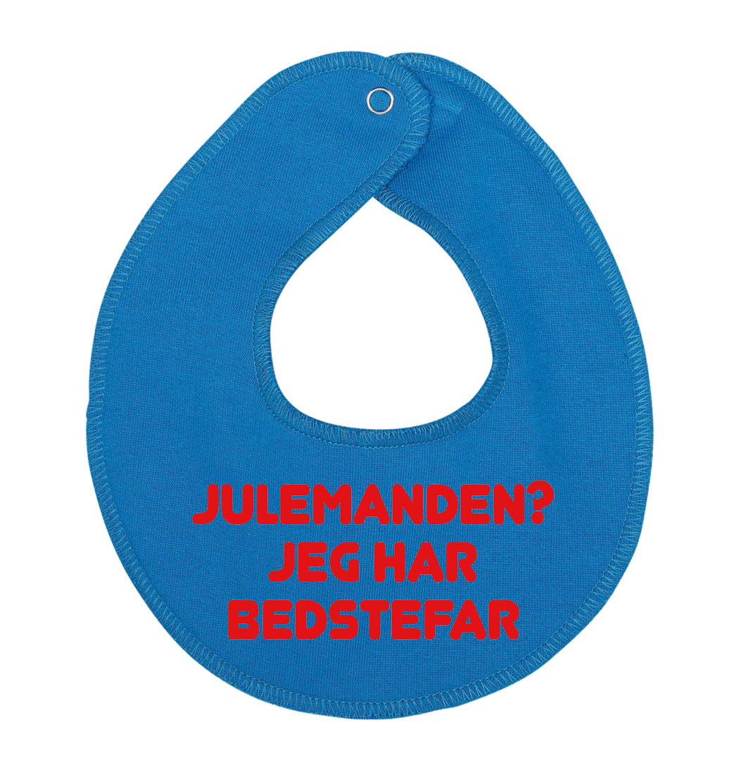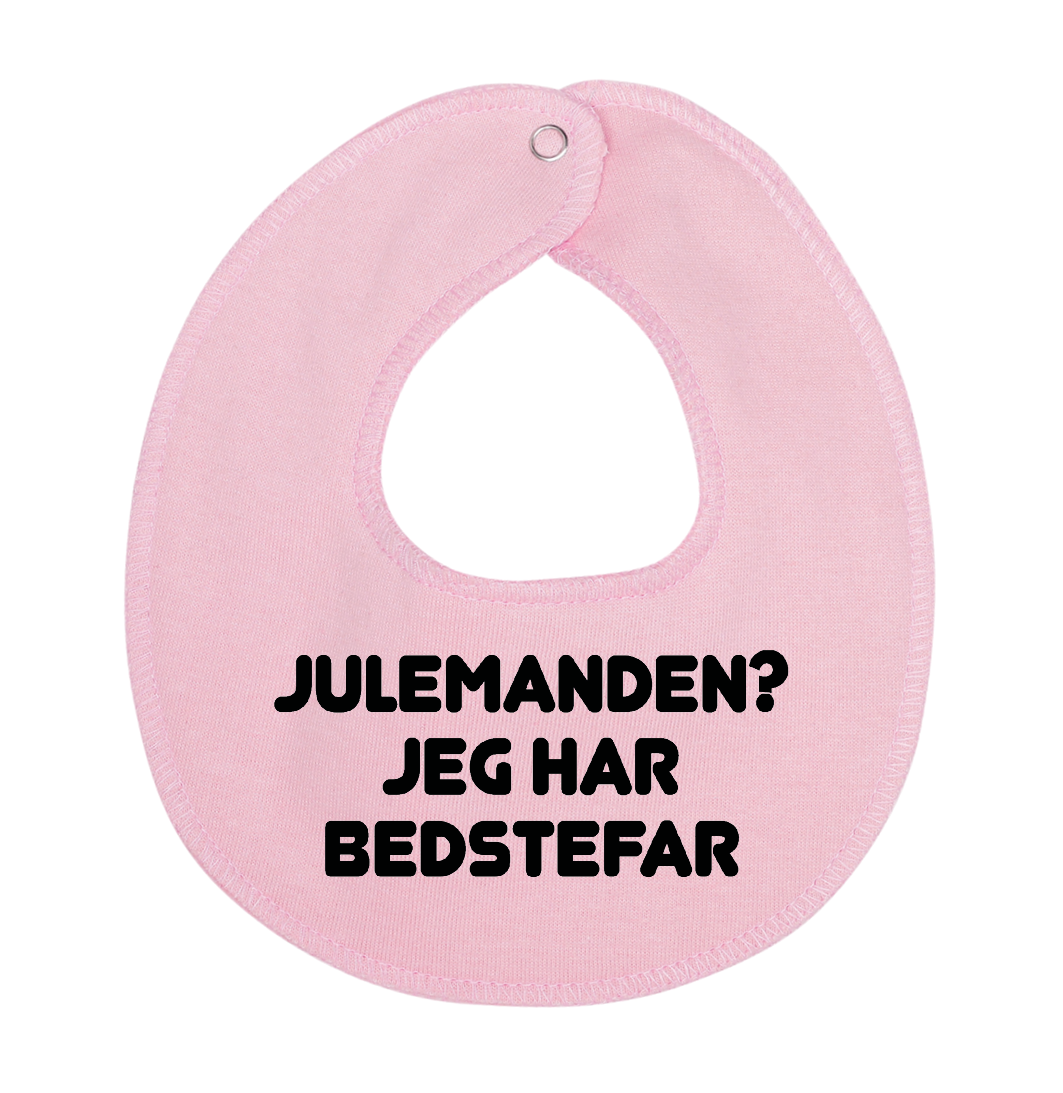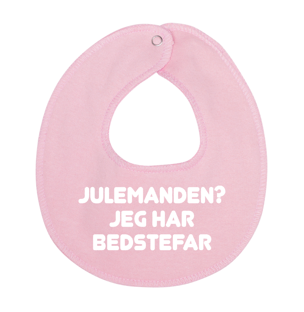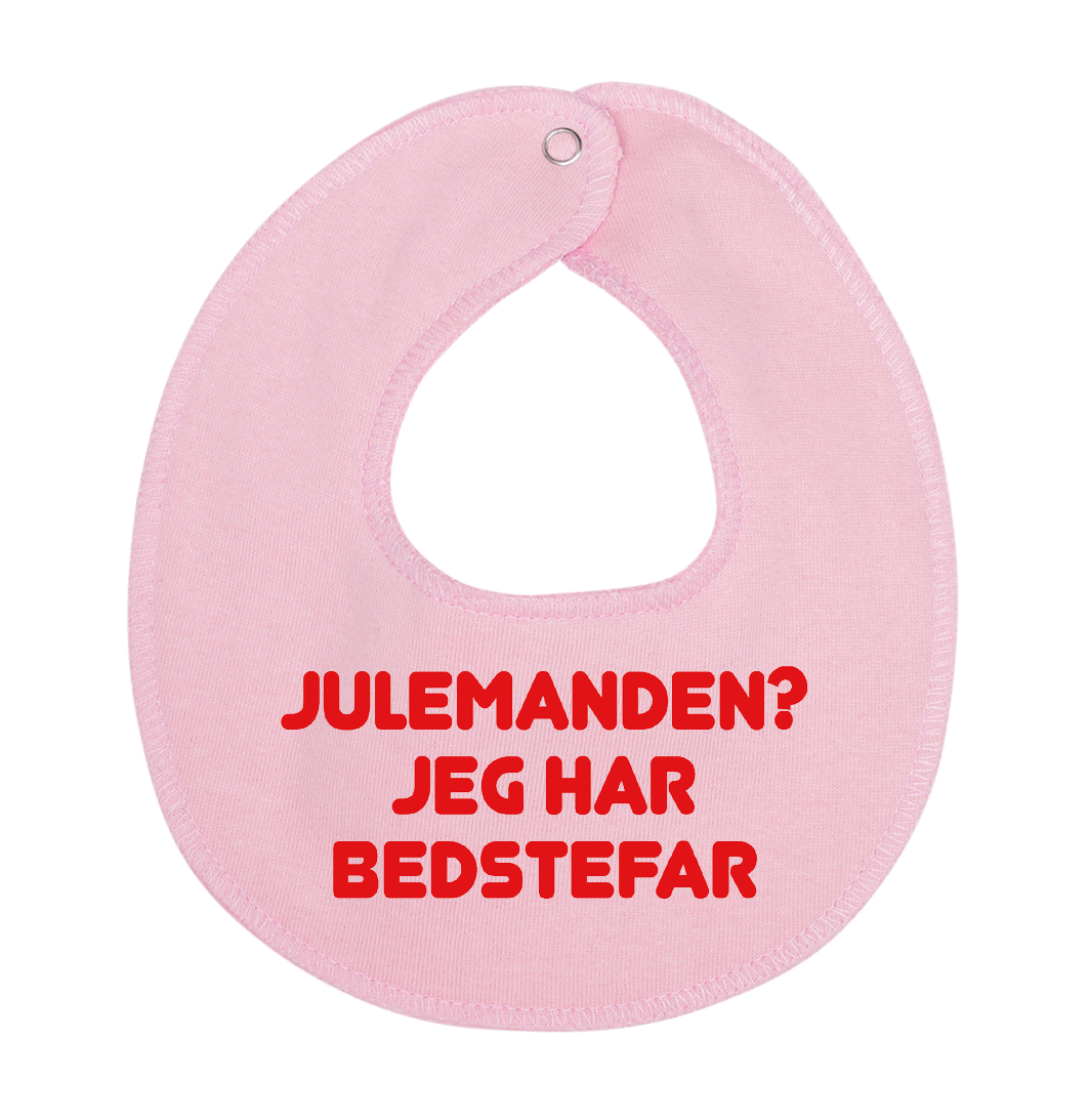 Denne jule hagesmæk / jule savlesmæk med teksten Julemanden? jeg har bedstefar, er det perfekte køb til baby som er meget forkælet af sin bedstefar.