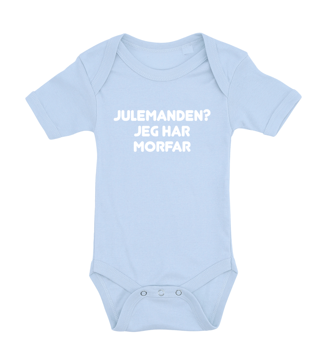 Denne jule bodystocking med teksten Julemanden? jeg har morfar, er det perfekte køb til baby som er meget forkælet af sin morfar.