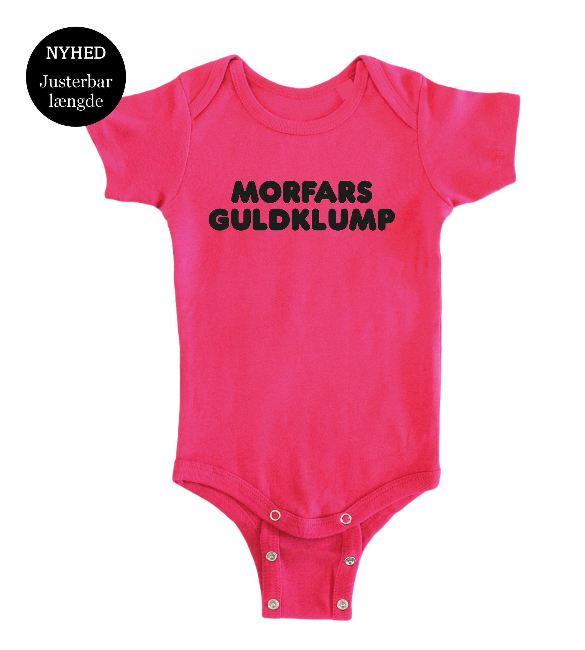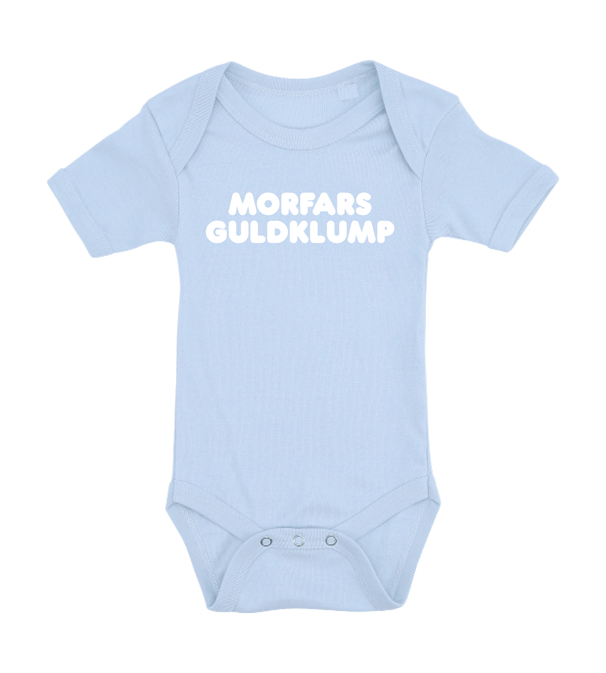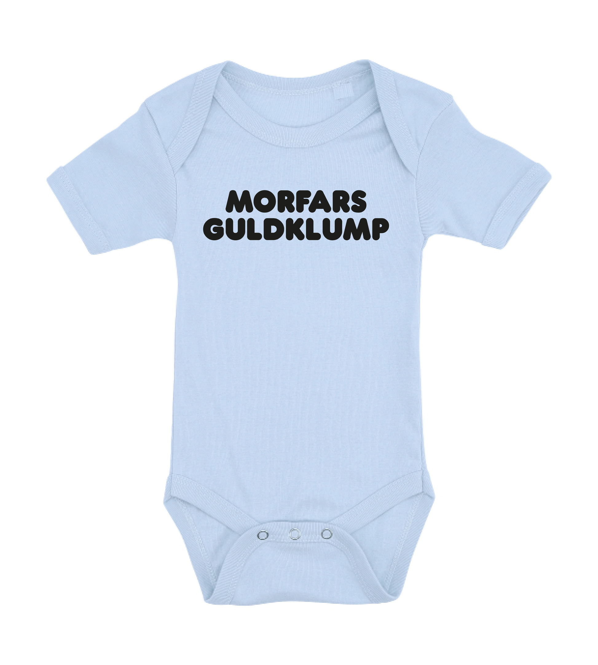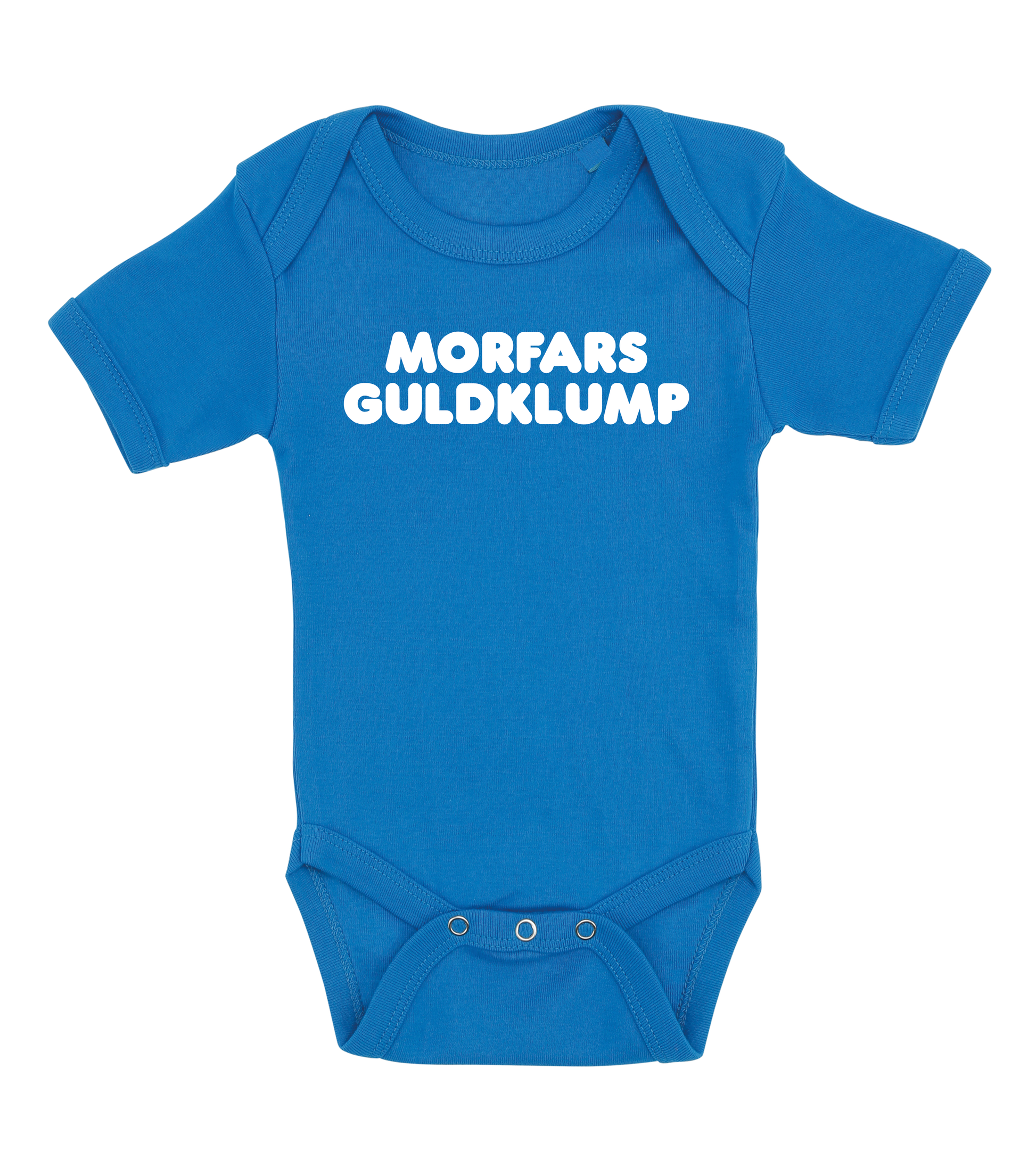 Denne baby bodystocking med teksten Morfars guldklump, er det perfekte køb til de kommende forældre, som venter sig en lille baby , som vil blive familiens guldklump, eller gave fra den stolte morfar.