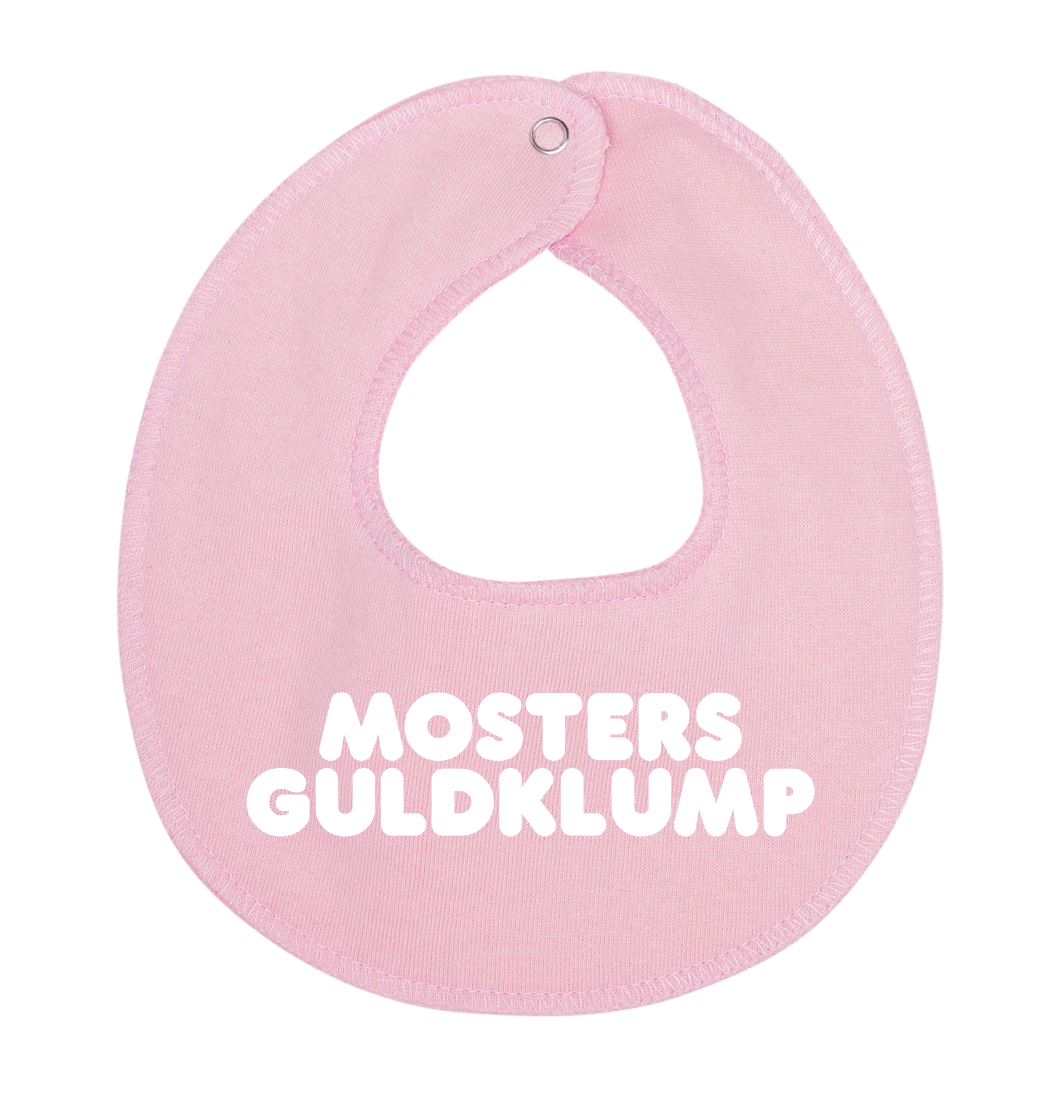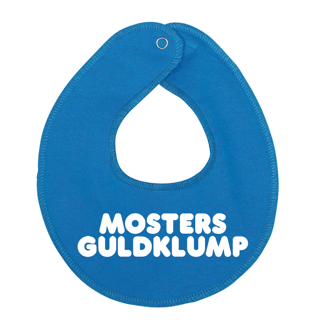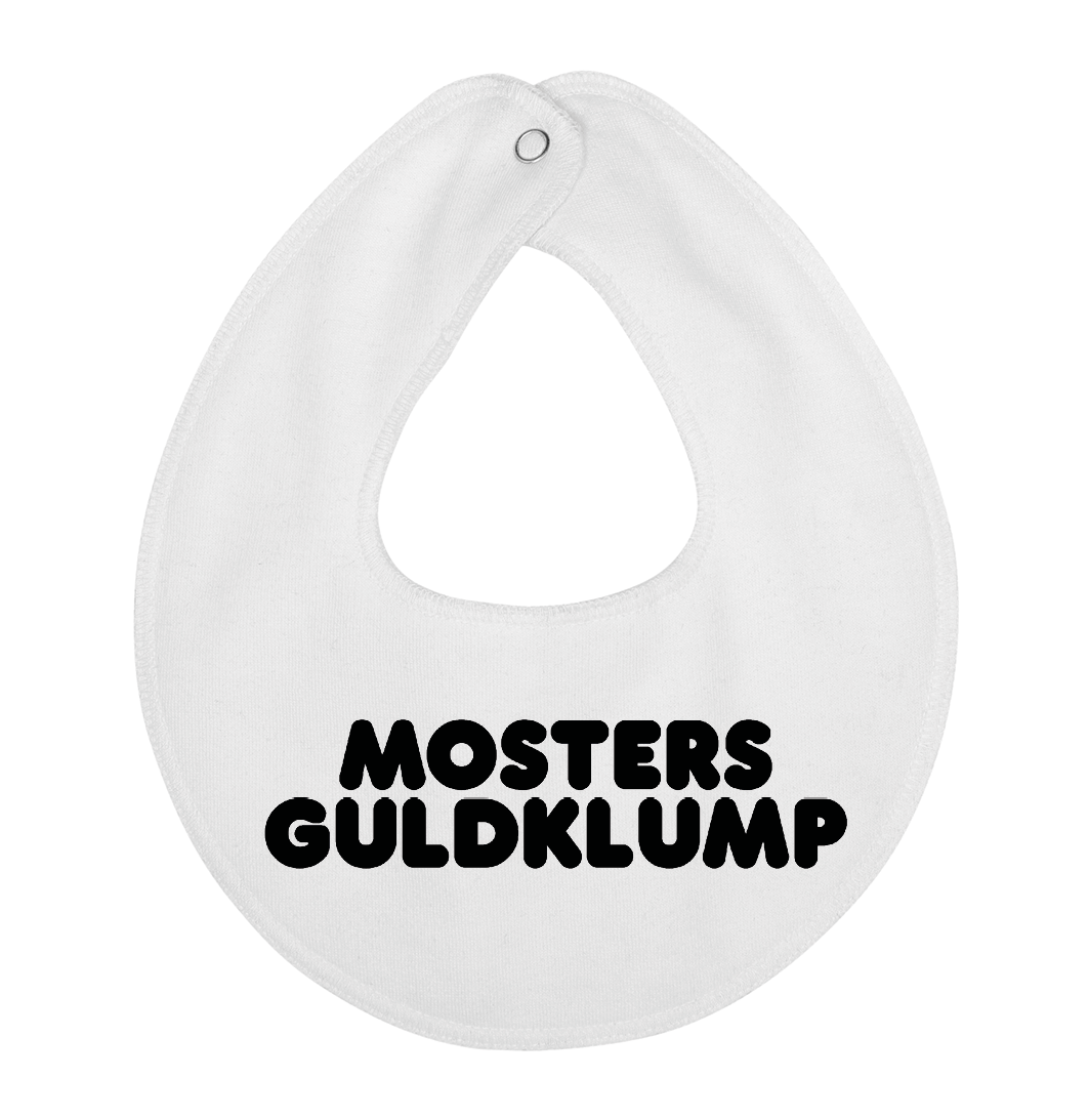Denne hagesmæk / savlesmæk med teksten mosters guldklump, er det perfekte køb til de kommende forældre, som venter sig en lille baby , som vil blive familiens guldklump, eller gave fra den stolte moster.