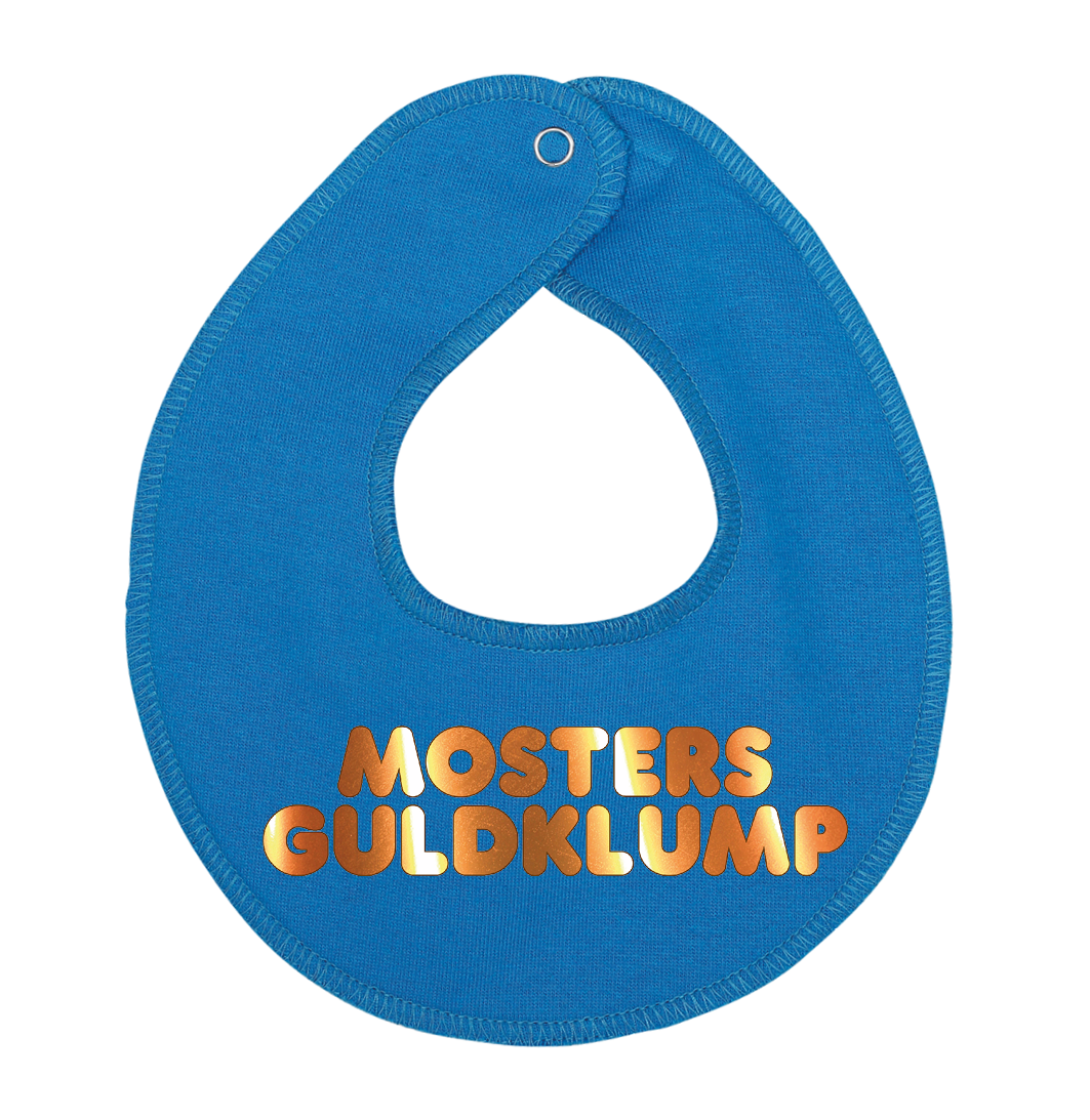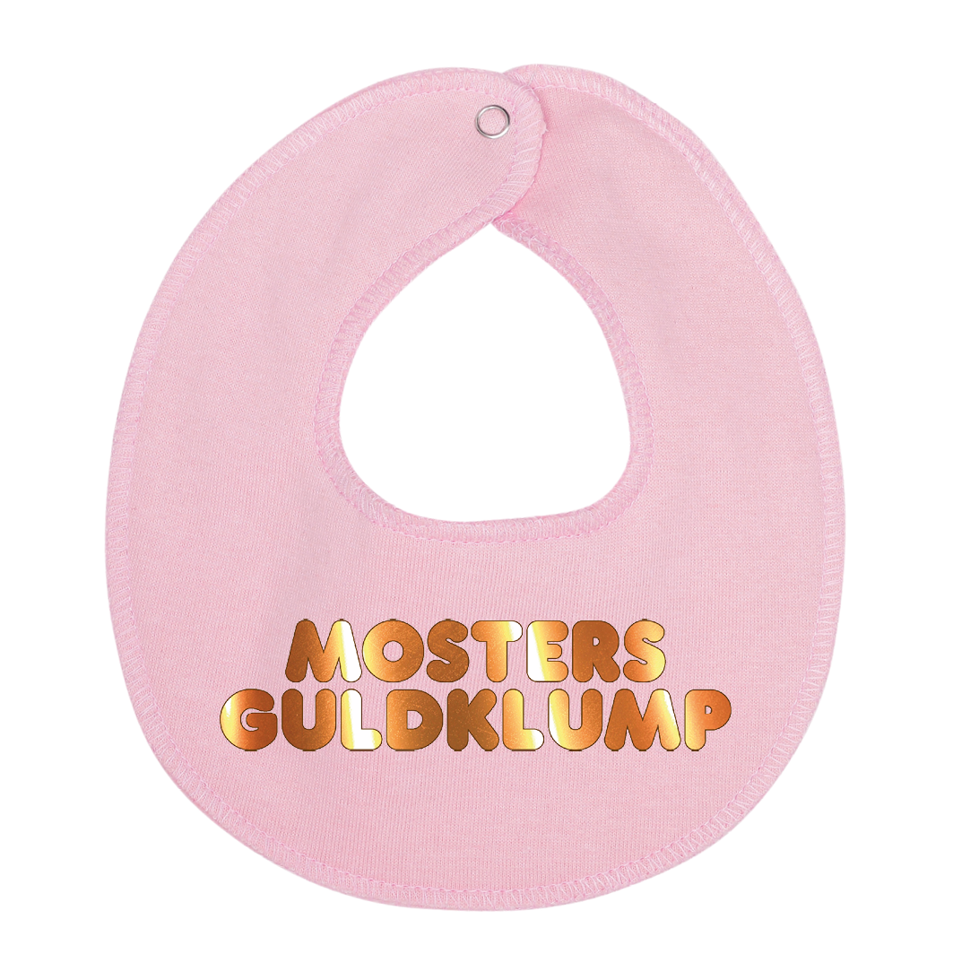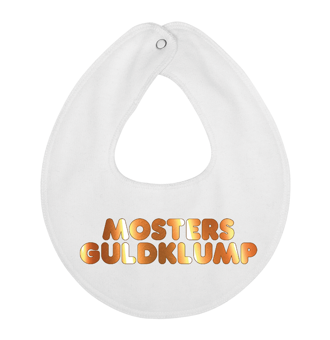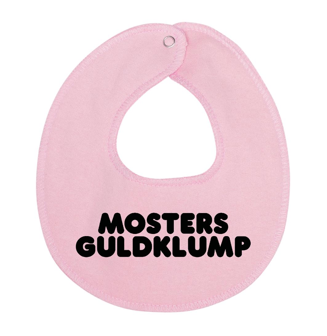 Denne hagesmæk / savlesmæk med teksten mosters guldklump, er det perfekte køb til de kommende forældre, som venter sig en lille baby , som vil blive familiens guldklump, eller gave fra den stolte moster.