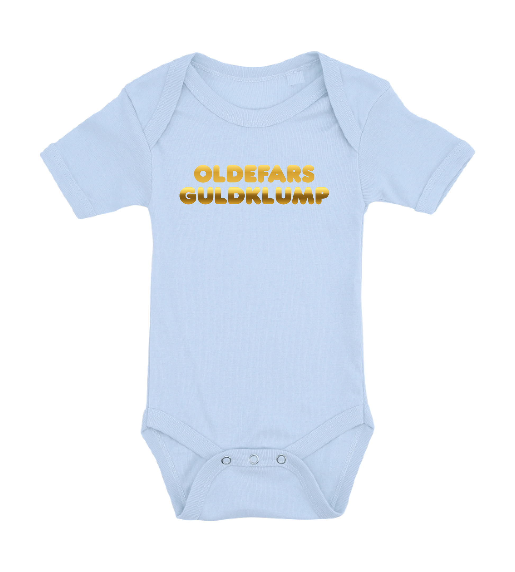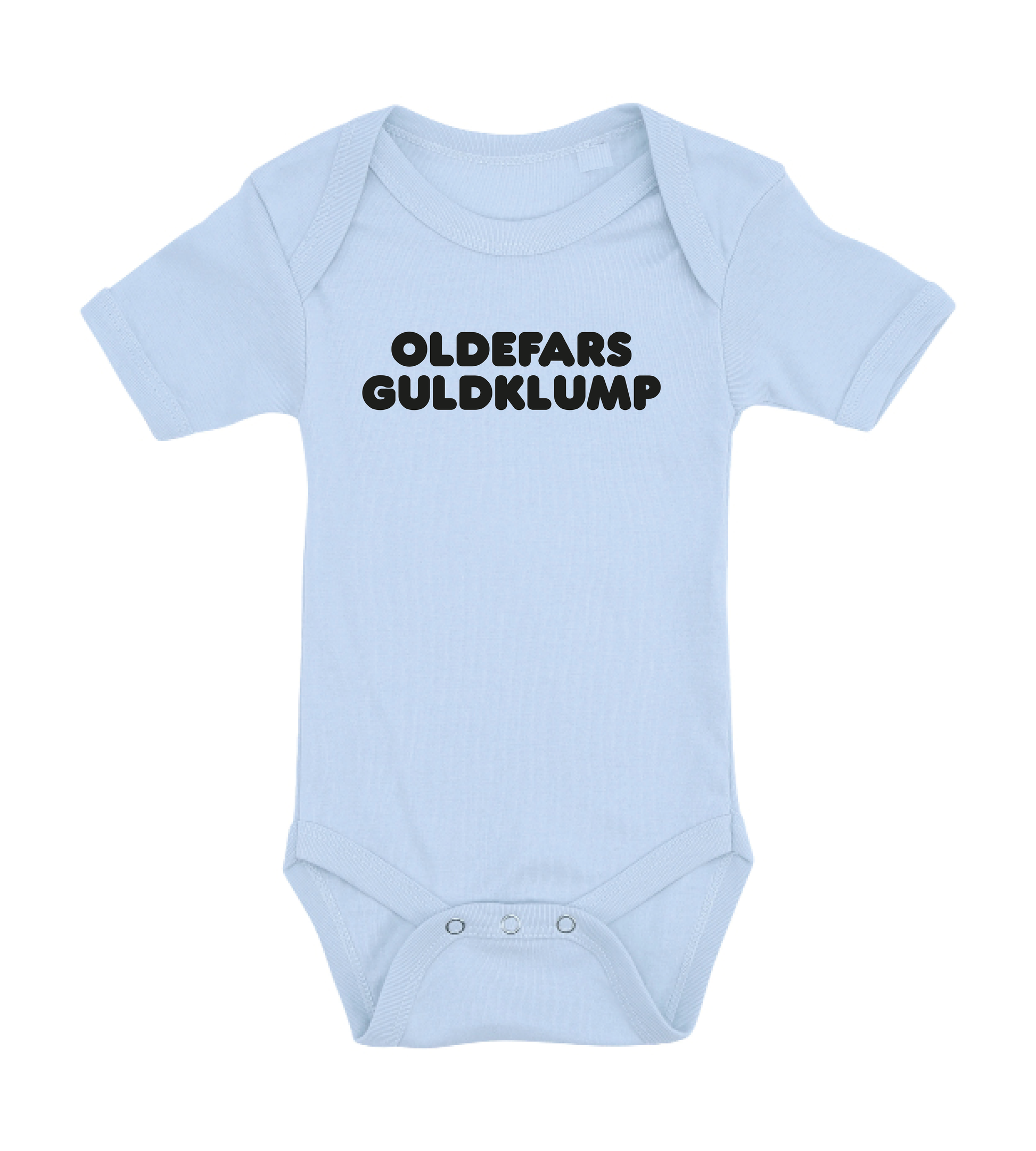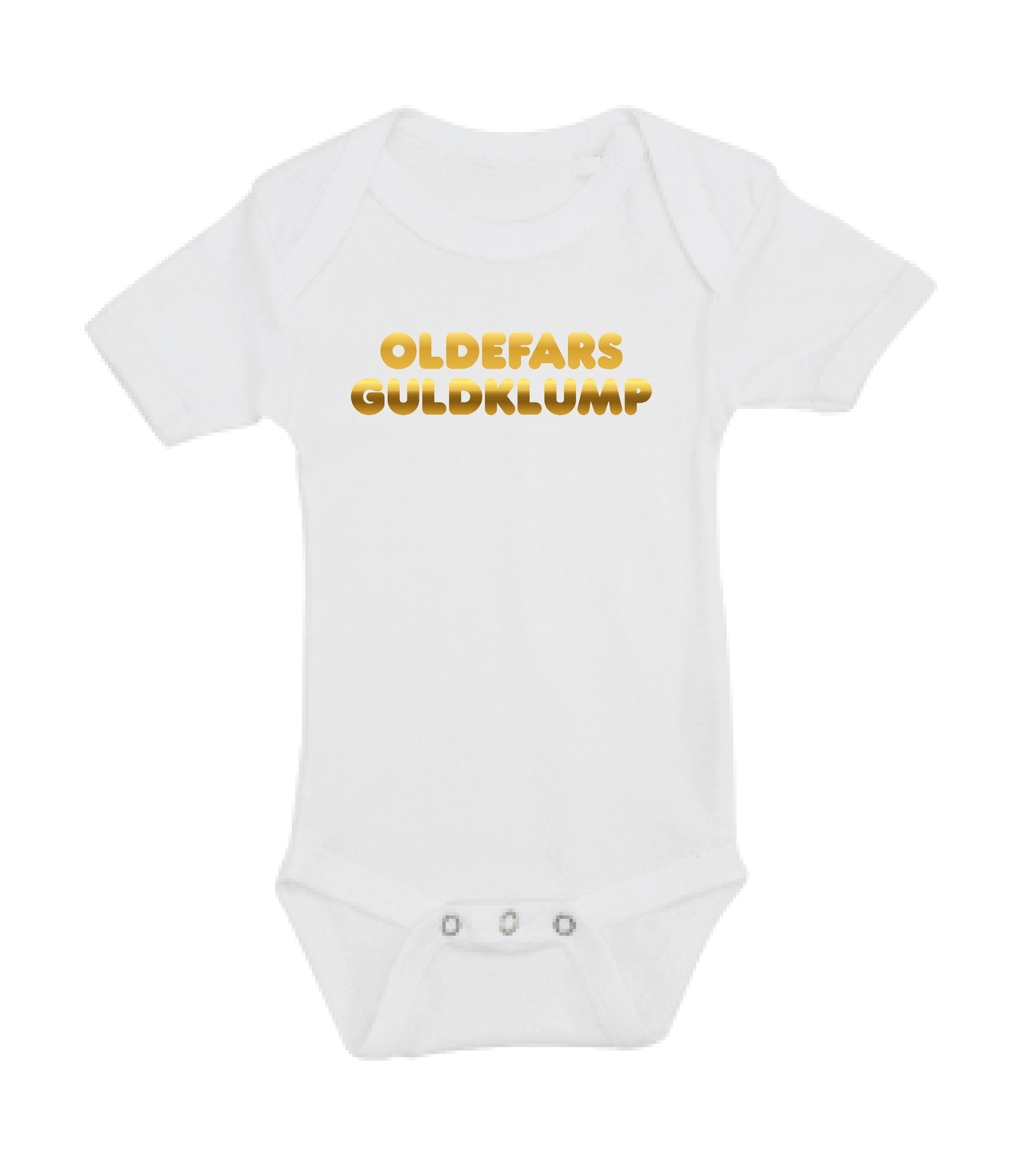 Denne baby bodystocking med teksten Oldefars guldklump. er det perfekte køb til de kommende forældre, som venter sig en lille baby , som vil blive familiens guldklump, eller gave fra den stolte oldefar.
