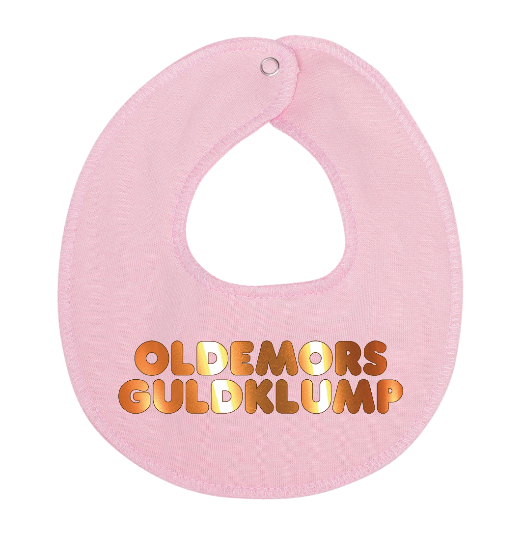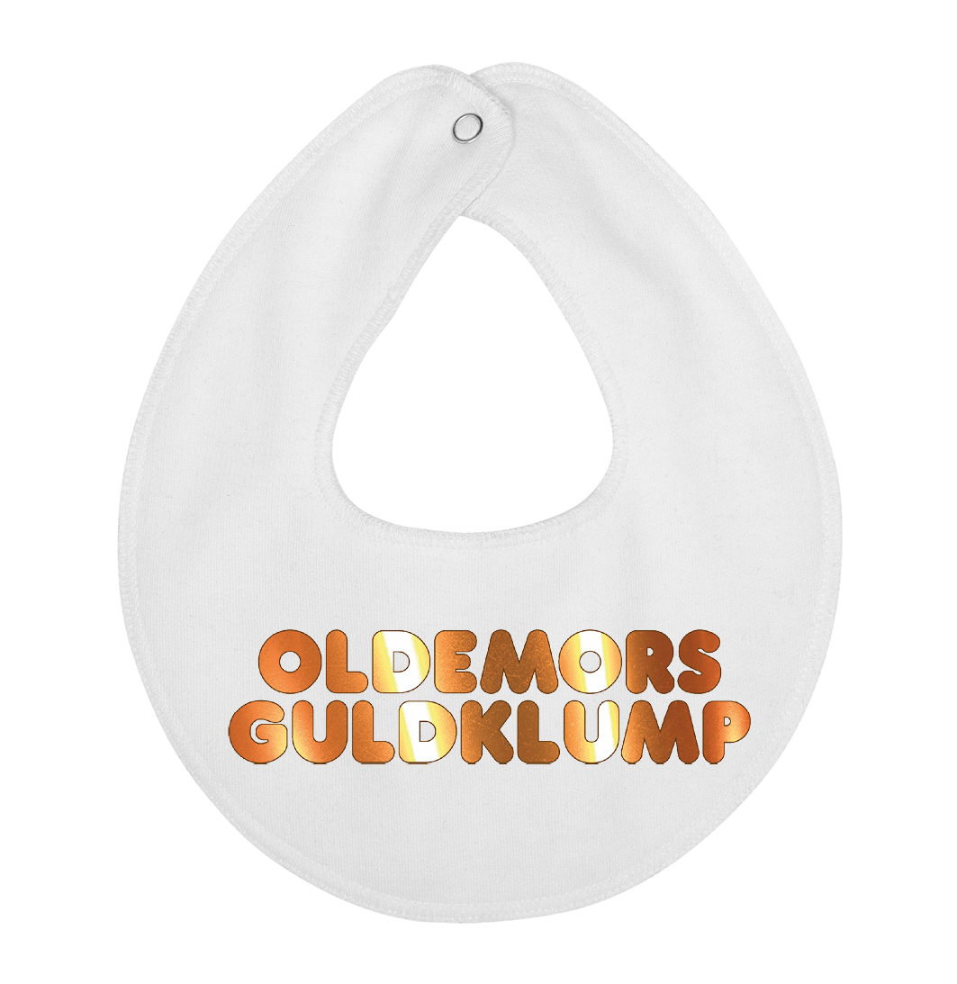 Denne hagesmæk / savlesmæk med teksten oldemors guldklump, er det perfekte køb til de kommende forældre, som venter sig en lille baby , som vil blive familiens guldklump, eller gave fra den stolte oldemor.