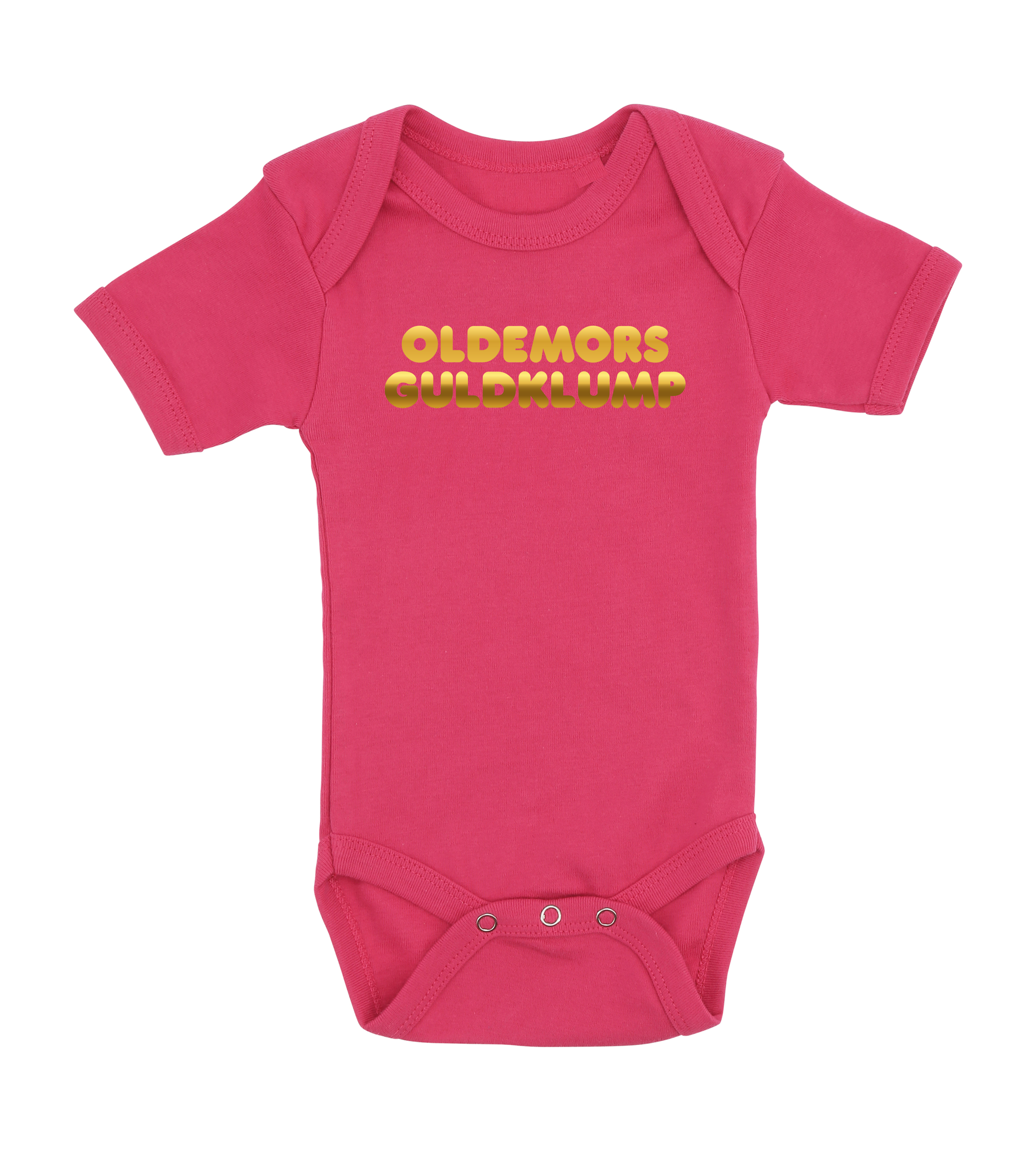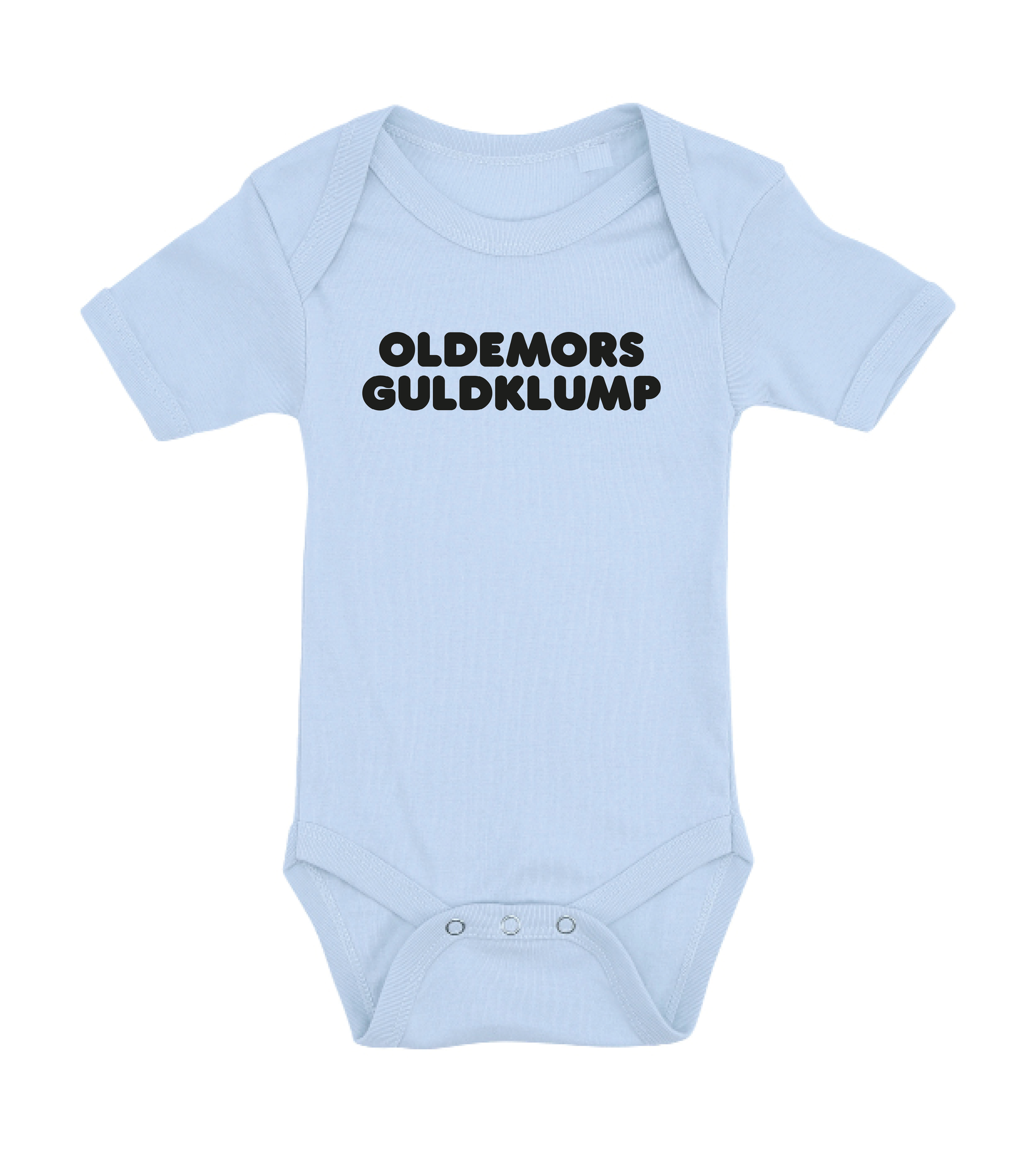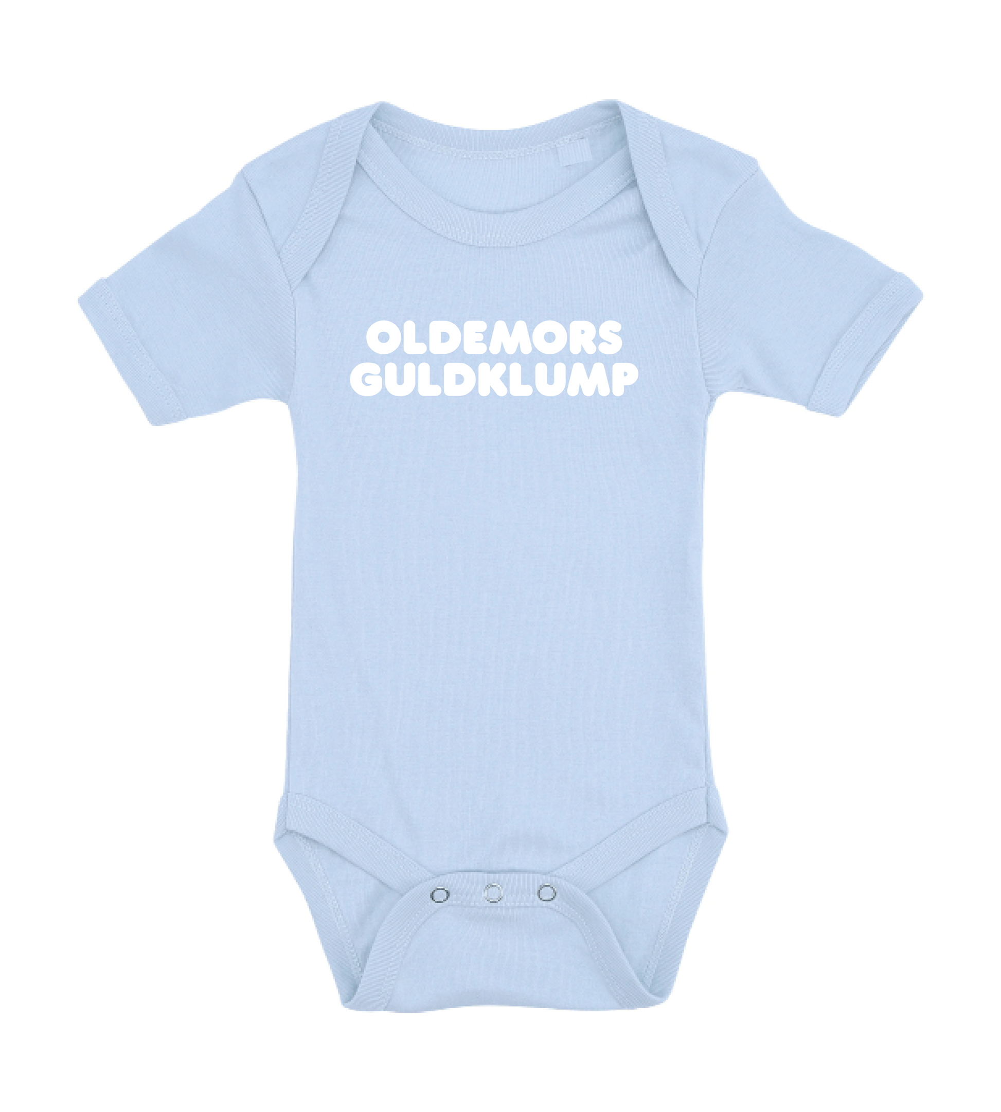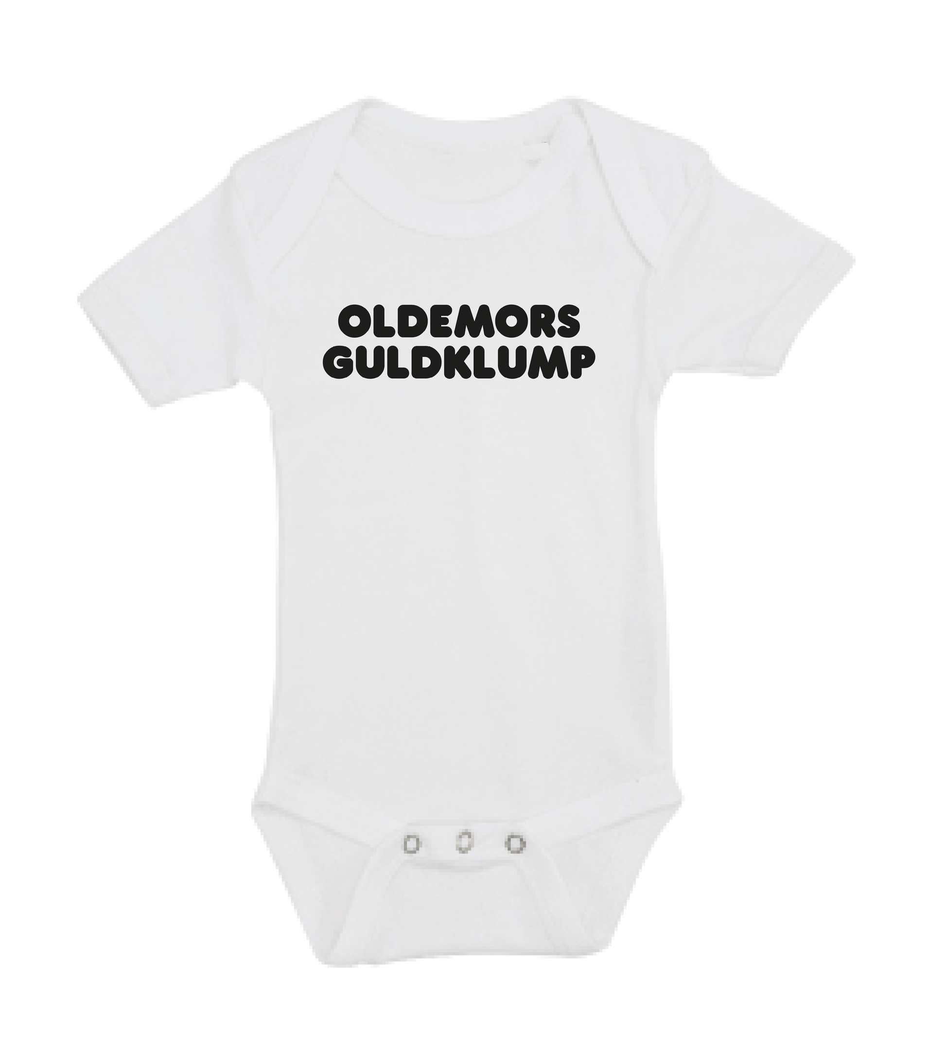 Denne baby bodystocking med teksten Oldemors guldklump, er det perfekte køb til de kommende forældre, som venter sig en lille baby , som vil blive familiens guldklump, eller gave fra den stolte oldemor.