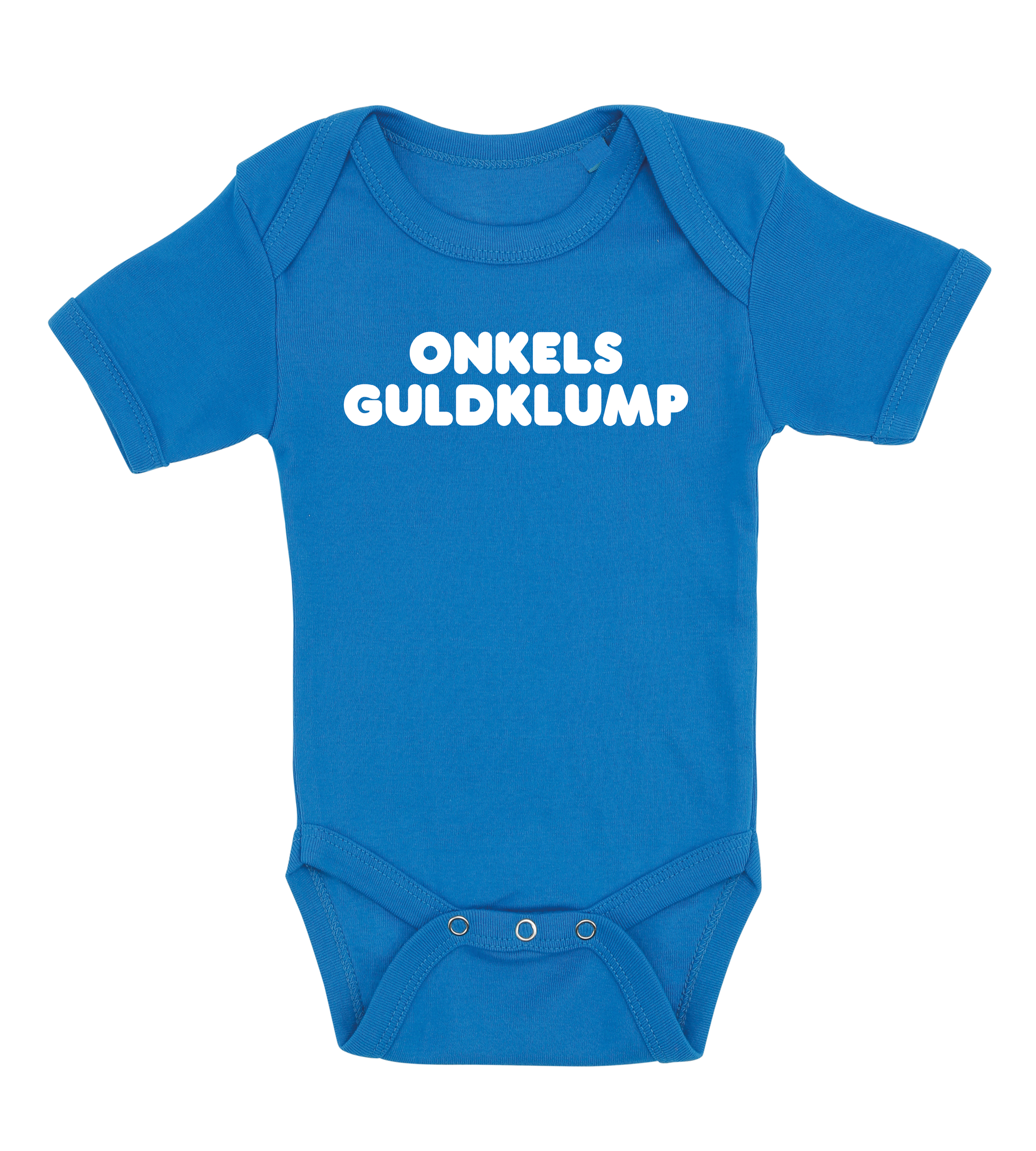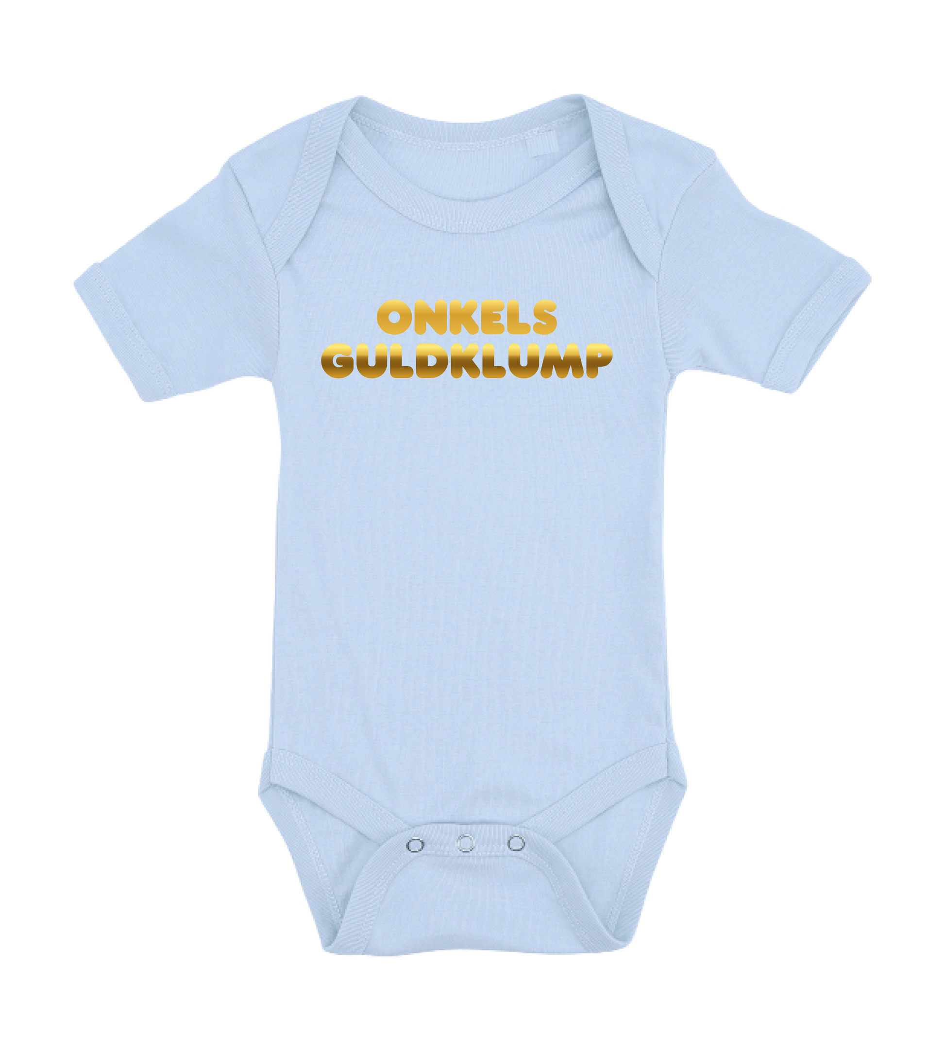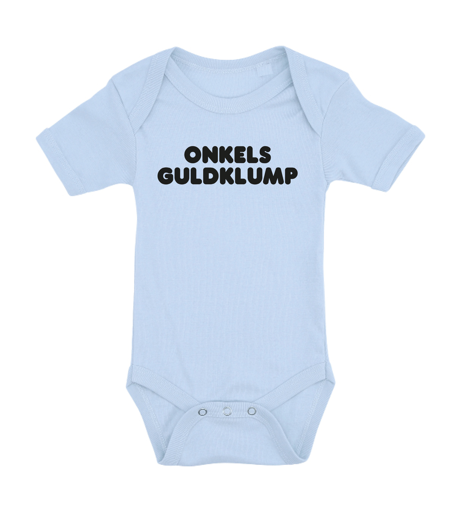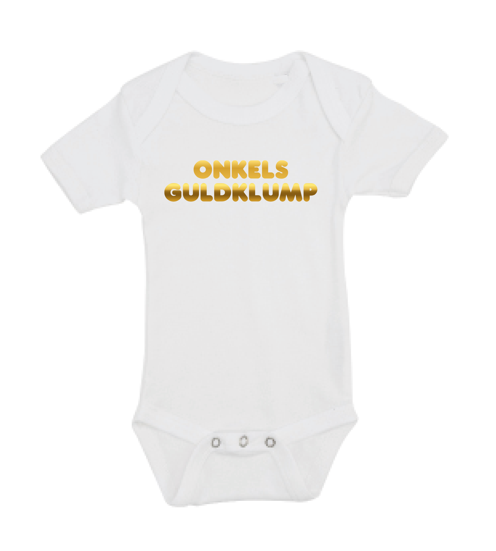 Denne baby bodystocking med teksten Onkels guldklump, er det perfekte køb til de kommende forældre, som venter sig en lille baby , som vil blive familiens guldklump, eller gave fra den stolte onkel..