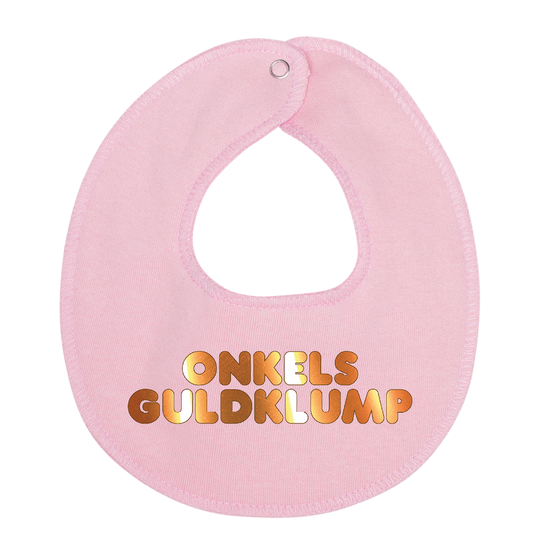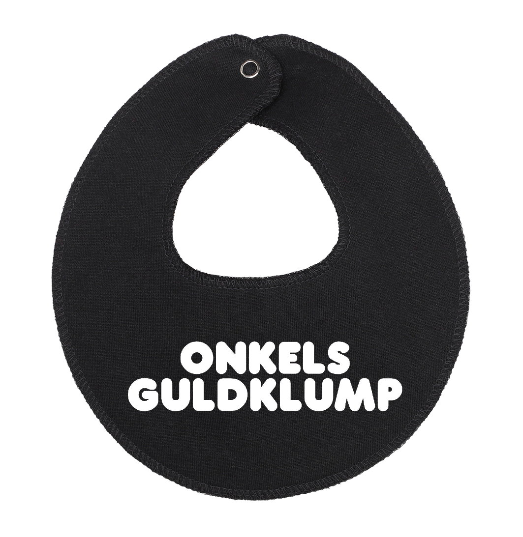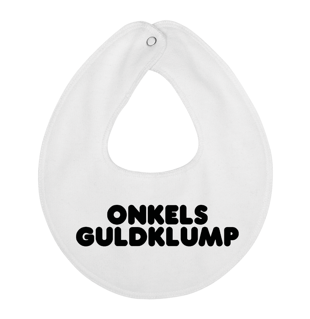 Denne hagesmæk / savlesmæk med teksten onkels guldklump, er det perfekte køb til de kommende forældre, som venter sig en lille baby , som vil blive familiens guldklump, eller gave fra den stolte onkel.
