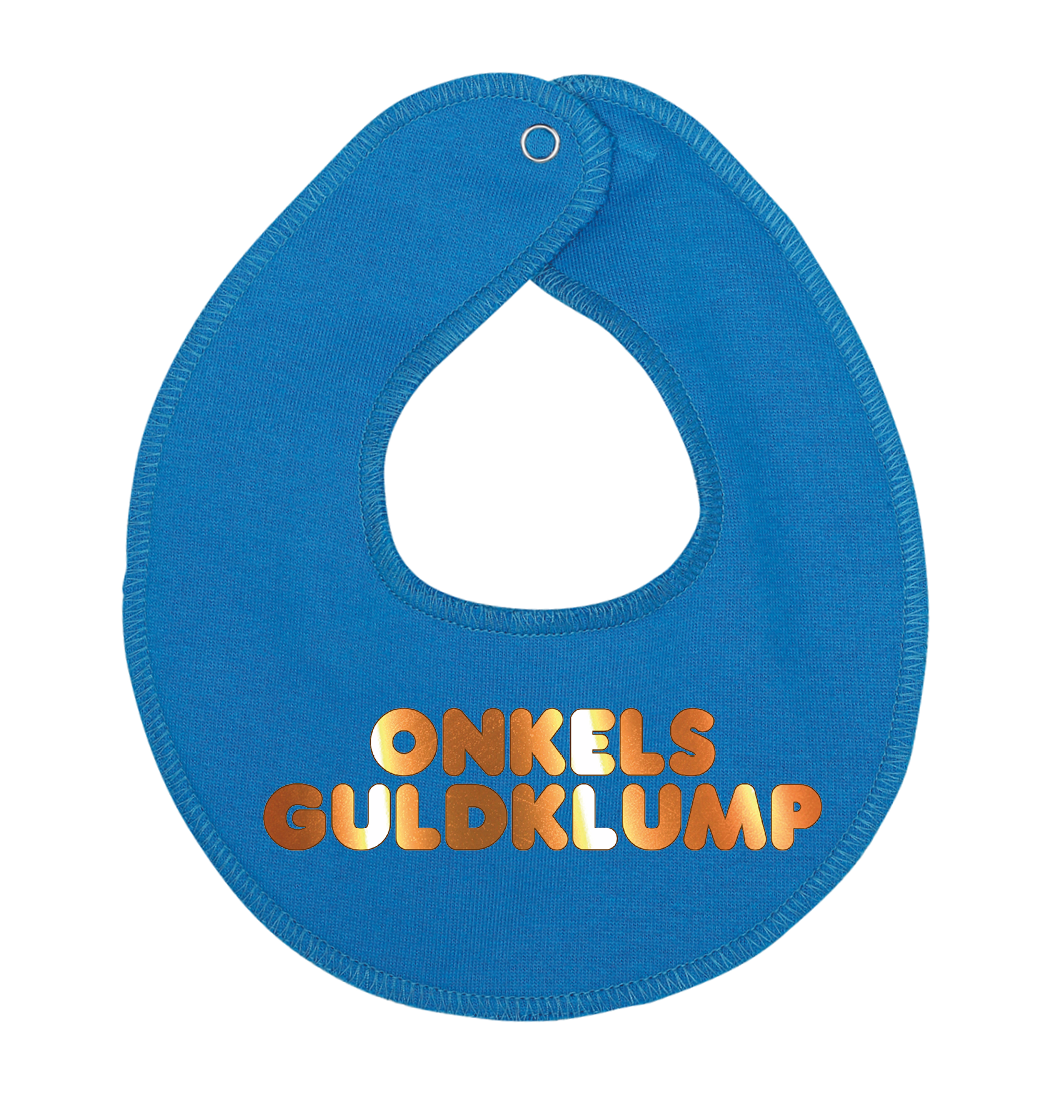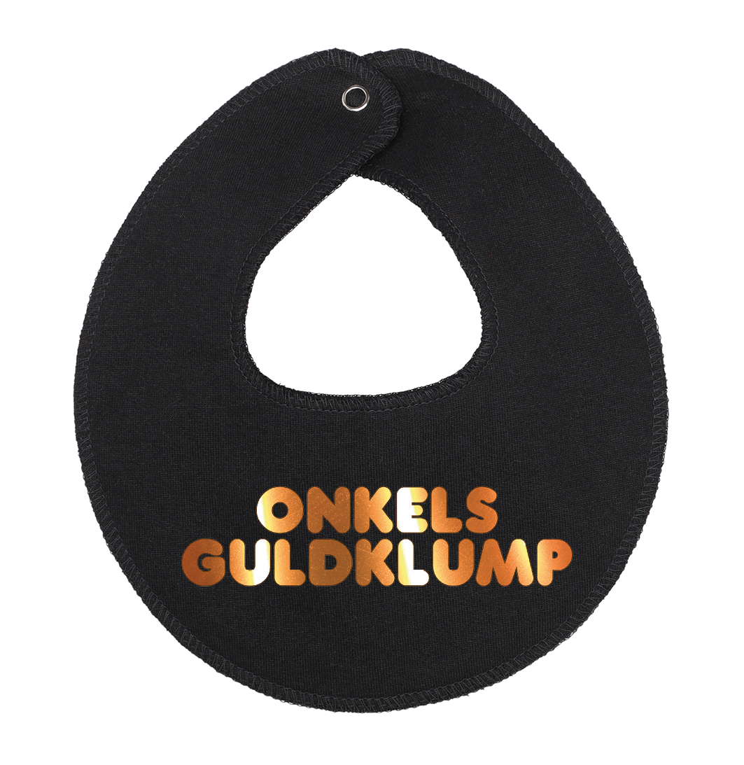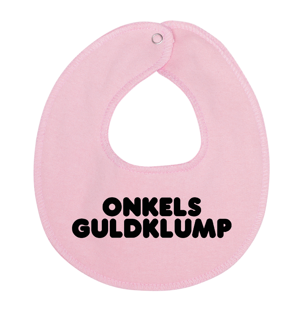 Denne hagesmæk / savlesmæk med teksten onkels guldklump, er det perfekte køb til de kommende forældre, som venter sig en lille baby , som vil blive familiens guldklump, eller gave fra den stolte onkel.