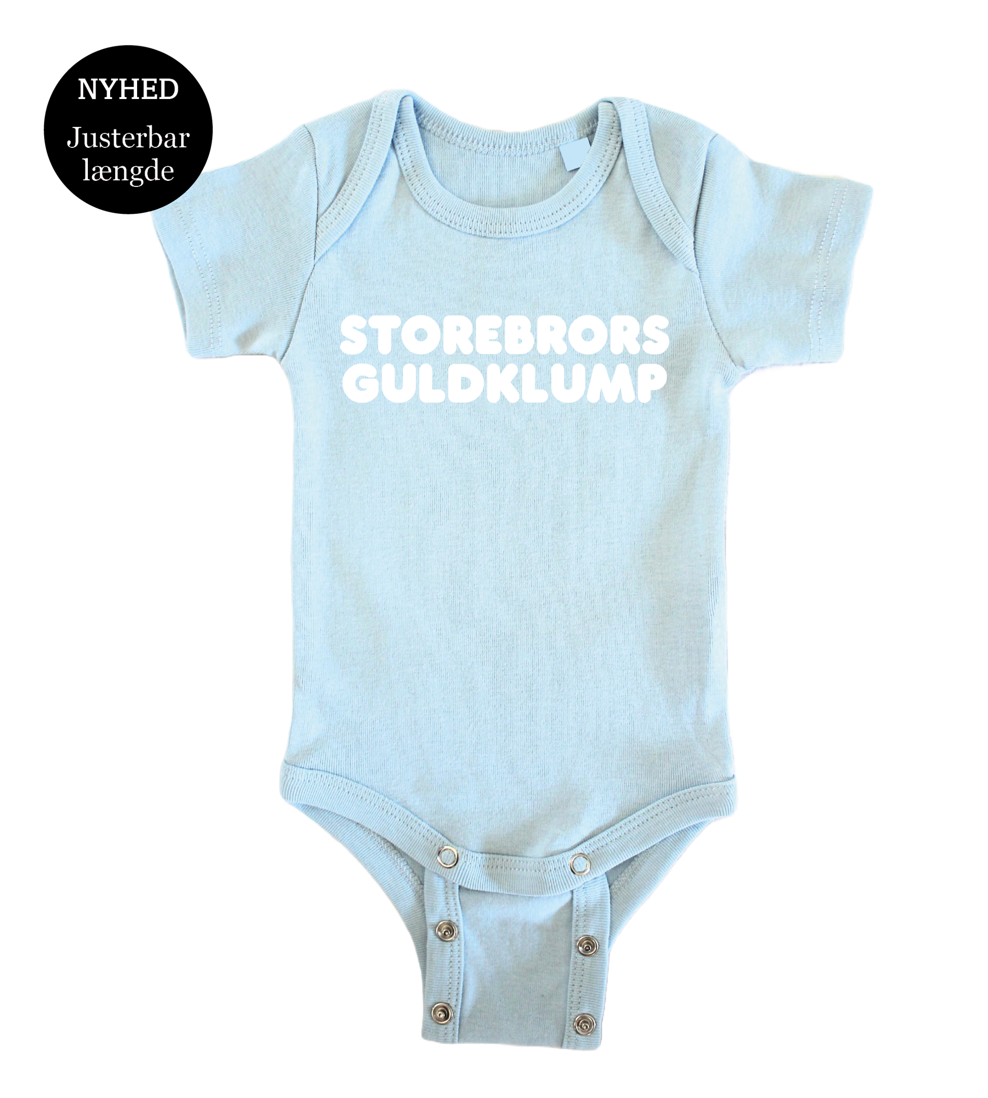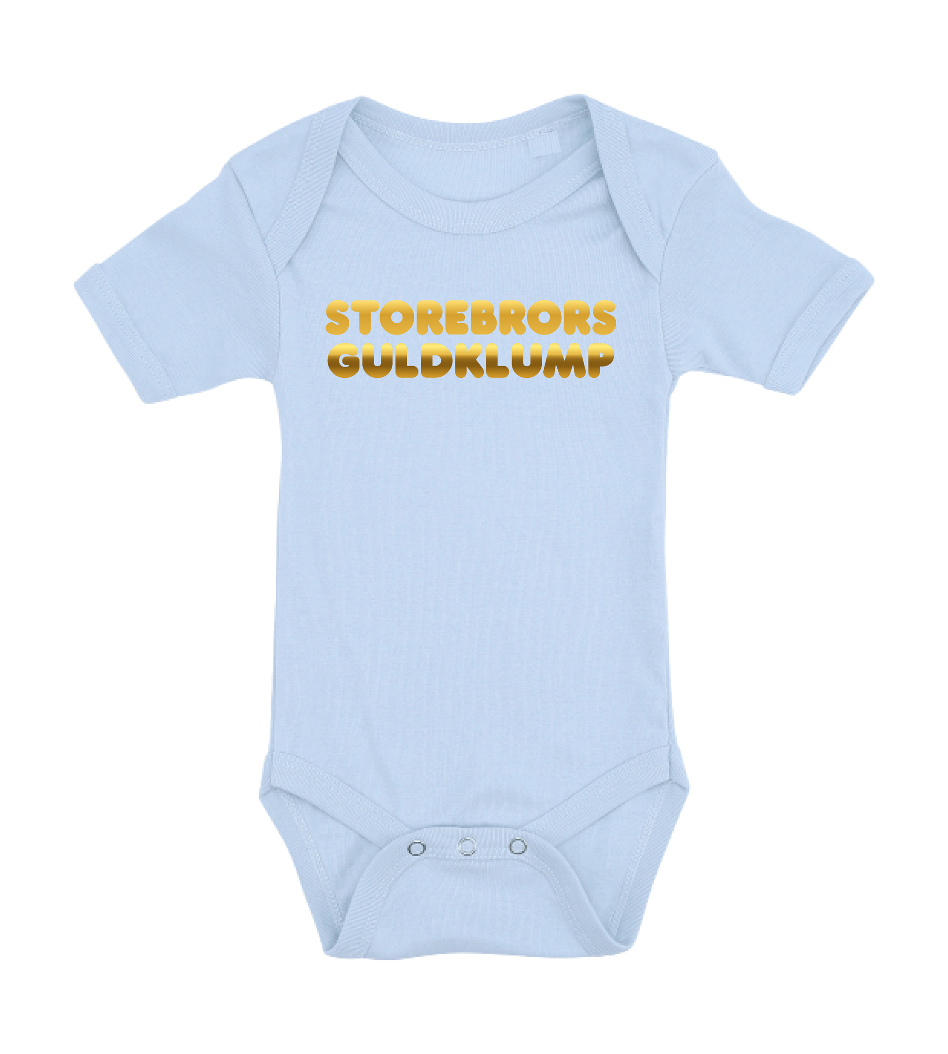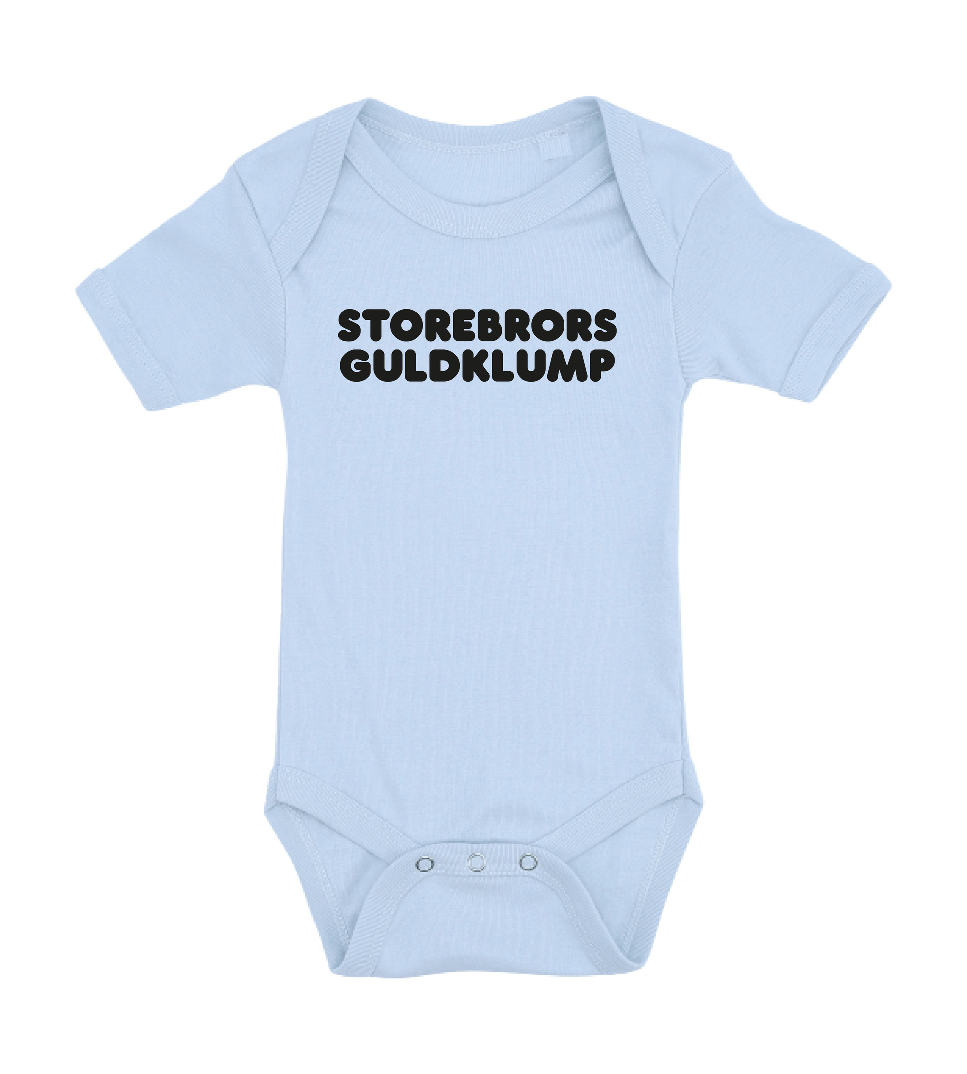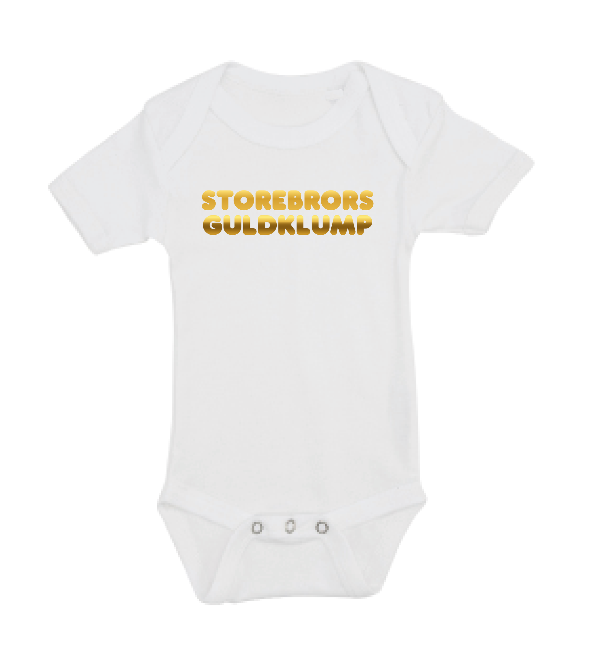 Denne baby bodystocking med teksten Storebrors guldklump, er det perfekte køb til de kommende forældre, som venter sig en lille baby , som vil blive familiens guldklump, eller gave fra den stolte storebror.