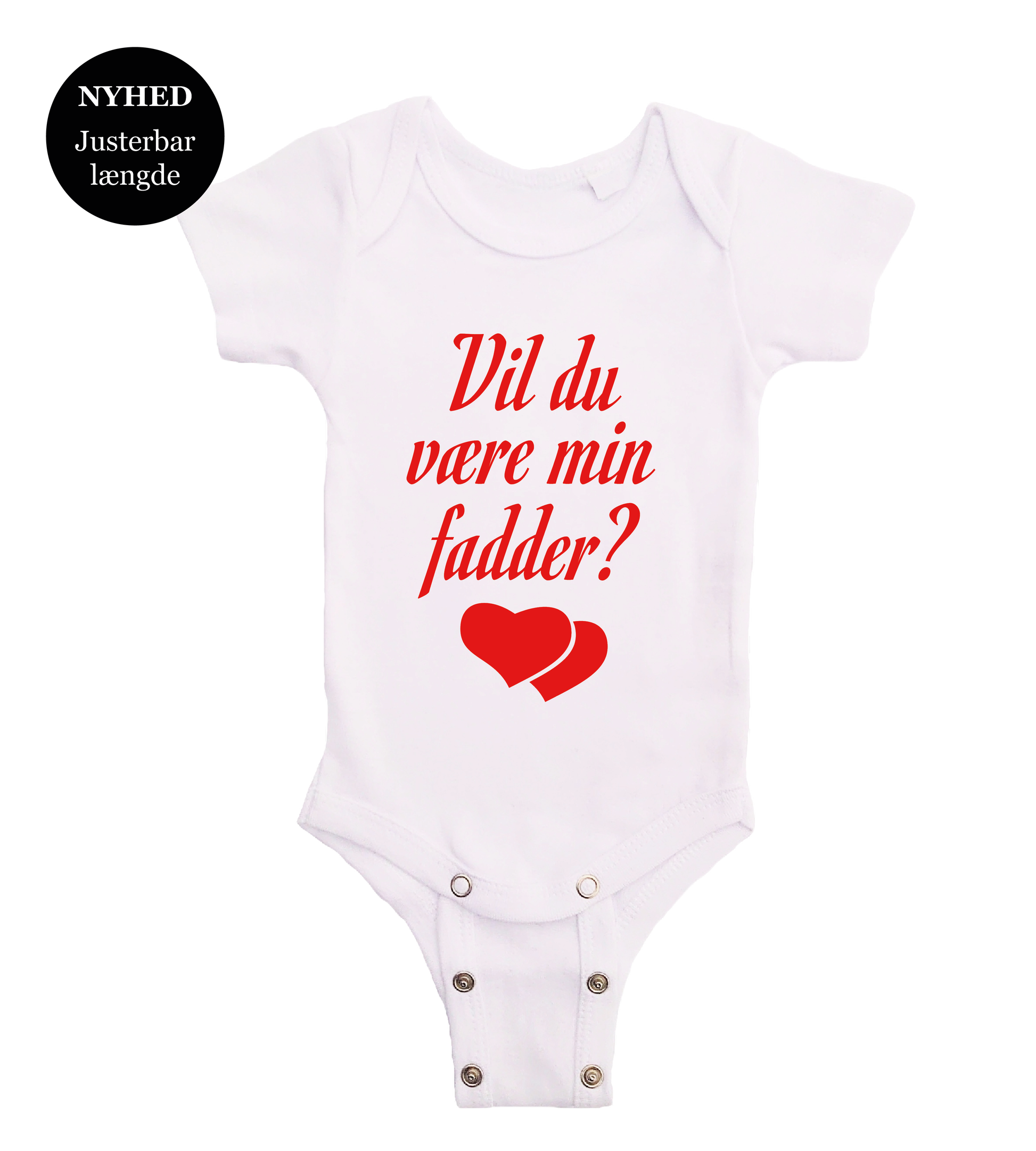 Denne baby bodystocking med teksten Vil du være min fadder, er en sød måde at spørge ens nærmeste om de vil stå fadder til deres lille øjesten.